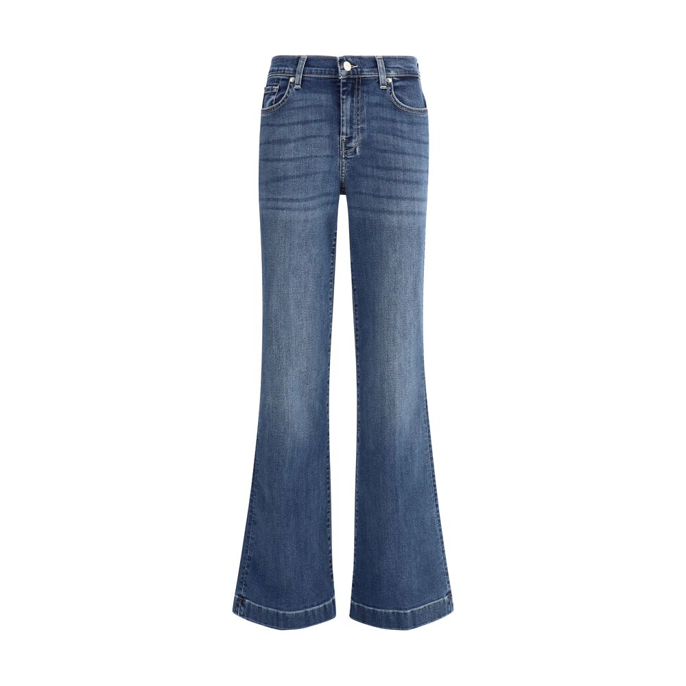 Cotton Jeans by 7 For All Mankind offer a sleek flare silhouette, perfect for slimming the figure with a sophisticated retro feel. The classic five-pocket design is complemented by a front button and zipper closure, as well as belt loops at the waist that enhance functionality. The iconic leather patch with the brand’s signature pressure-printed print, applied on the back, lends a distinctive and authentic detail. A versatile and feminine garment, ideal for enhancing everyday looks with casual elegance.