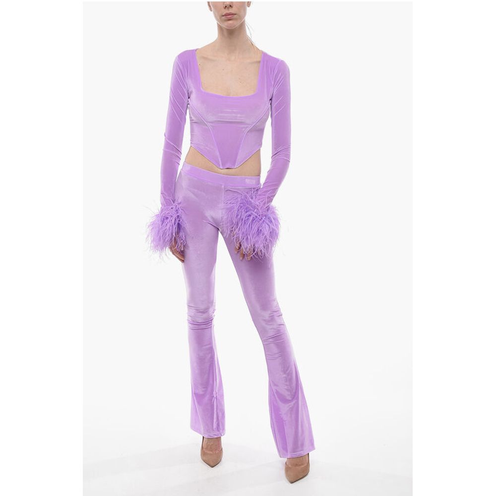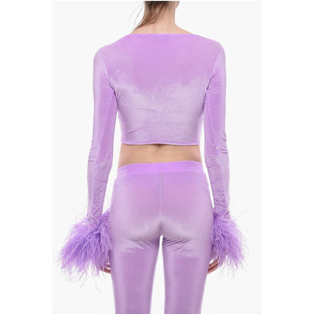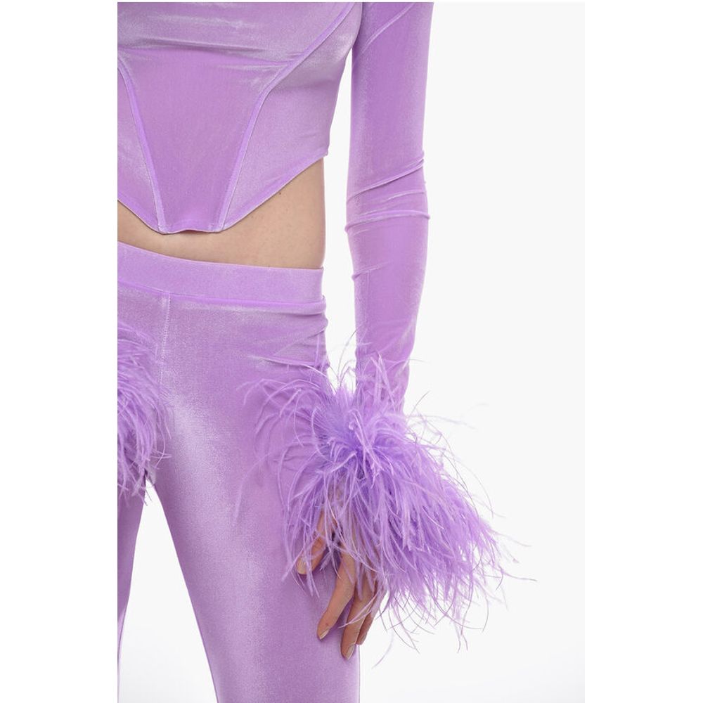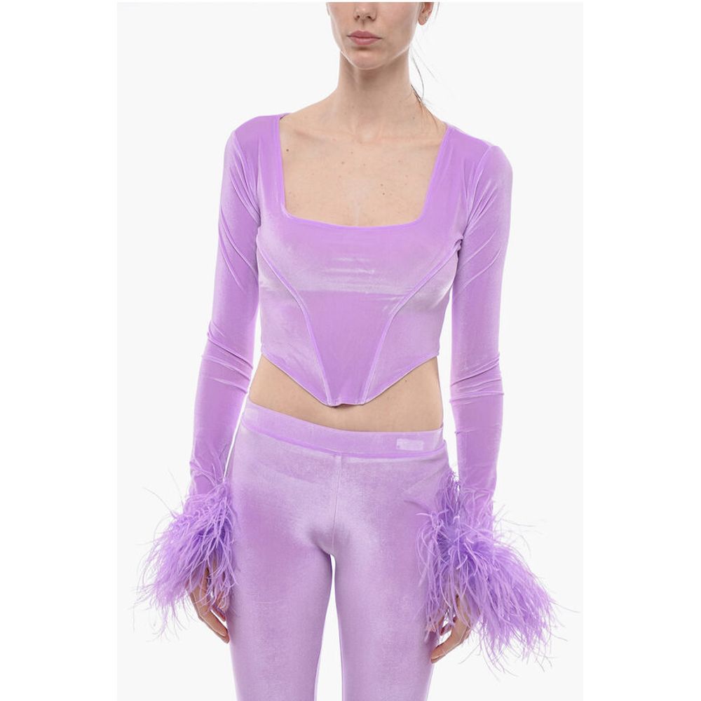 Adriana Hot Couture Bustier Chenille Bustier Top with Faux Feather on the Sleeve