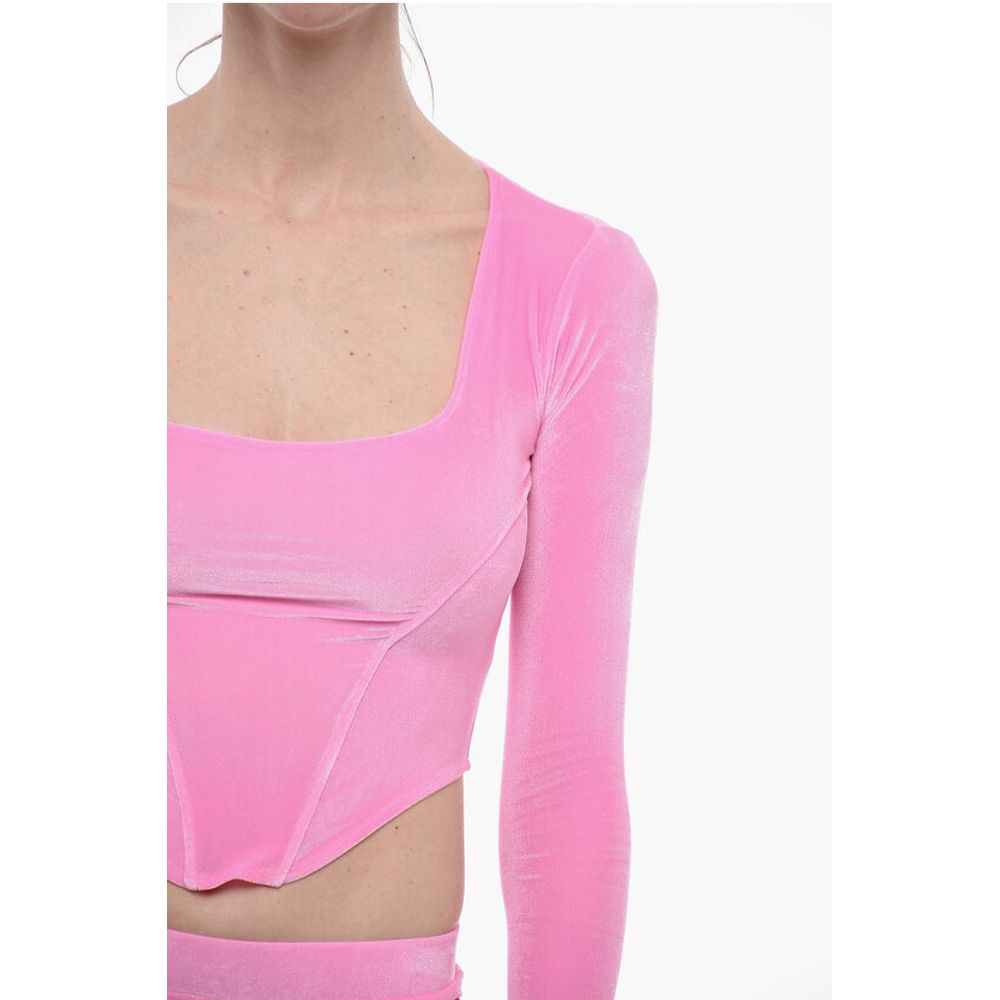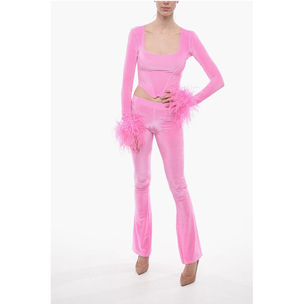 Adriana Hot Couture Bustier Chenille Bustier Top with Faux Feather on the Sleeve