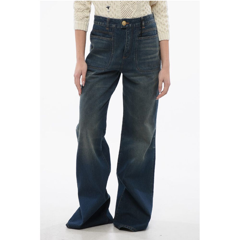 Balmain 4-Pocketed Flared Fit Denims with Jewel Button