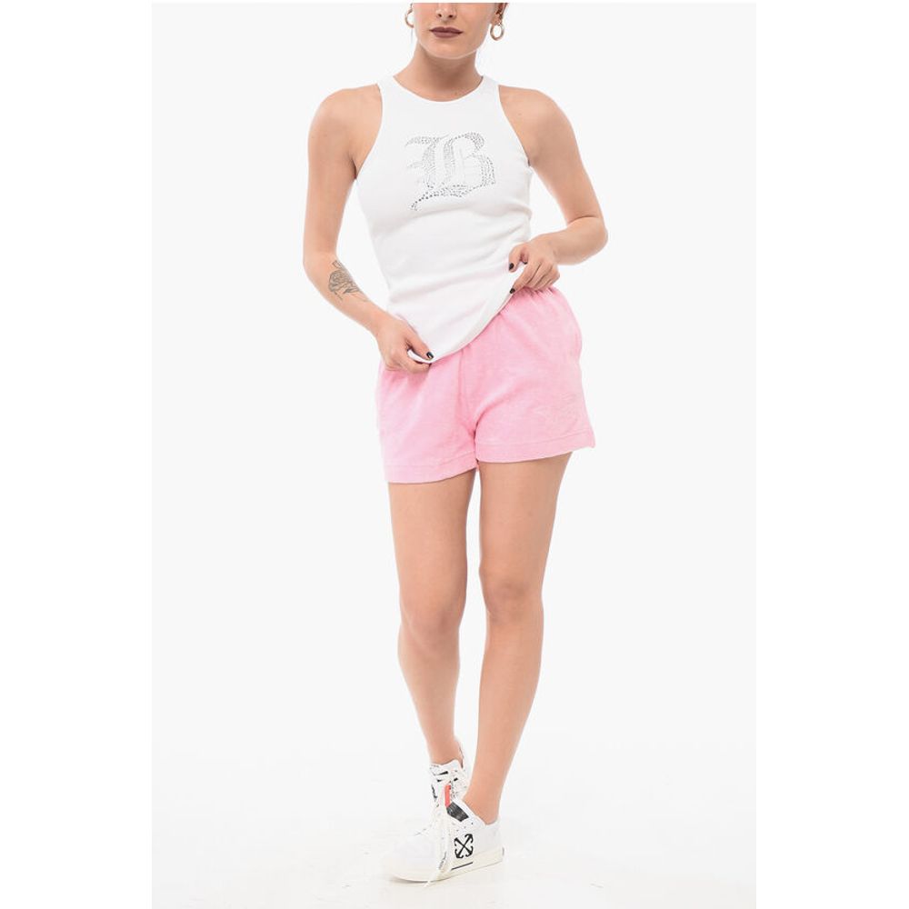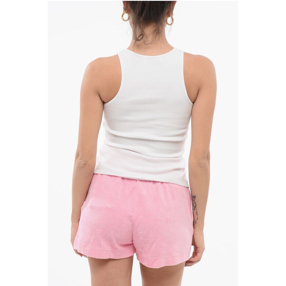 Blumarine Ribbed Tank Top with Rhinestoned Logo