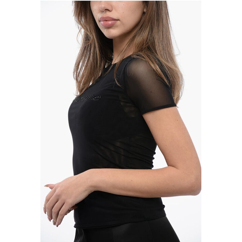 Blumarine Tulle T-Shirt with Rhinestone Logo