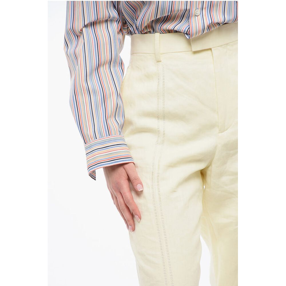 Bottega Veneta Pure Linen Pants with Embroidered Front Pince