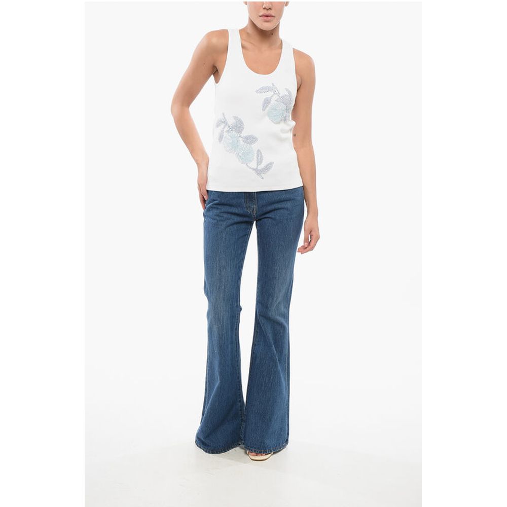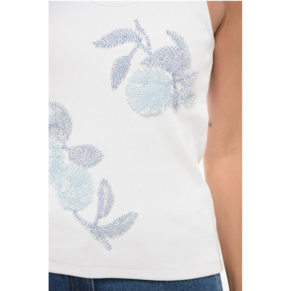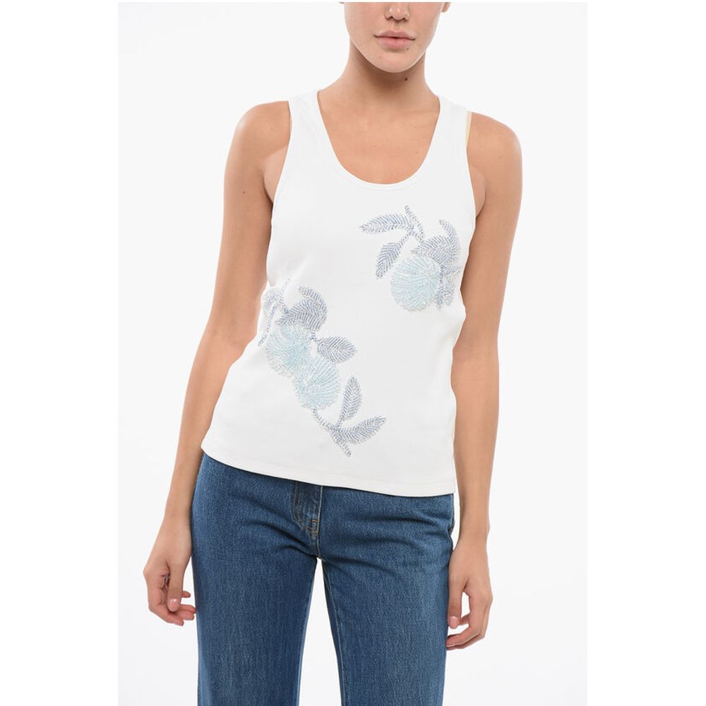 Bottega Veneta Ribbed Cotton Tank Top with Beaded Embroidery