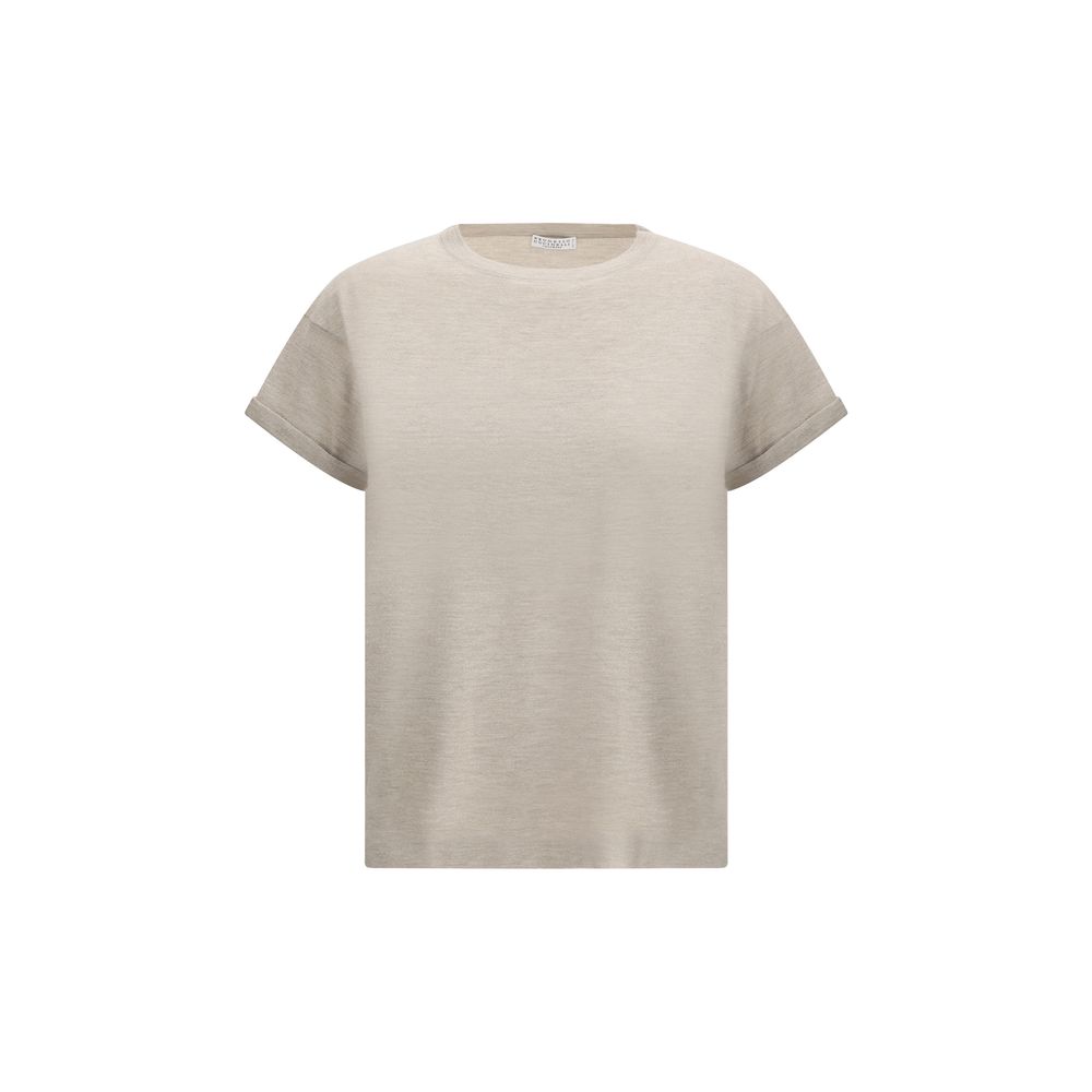 Brunello Cucinelli’s cashmere T-shirt is an elegant and versatile piece, perfect for adding a touch of luxury to your casual wardrobe. Featuring a ribbed crew neck, it has a monochrome design with a delicate glitter effect that enhances its luminosity. A must-have that combines the quality of cashmere with the sophistication of detail