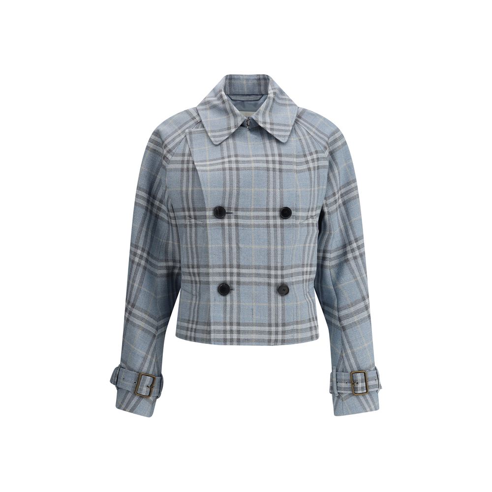 Burberry’s Jacket features a double-breasted front button closure with an elegant and refined cut. Classic lapels and a hook-and-eye collar closure add a touch of versatility to the design. Two side welt pockets offer practicality, while adjustable buckle cuffs complete the look with a distinctive detail. It’s all enhanced by the iconic Archivio Check pattern, which gives the jacket an instantly recognizable and sophisticated feel, emblematic of Burberry style.