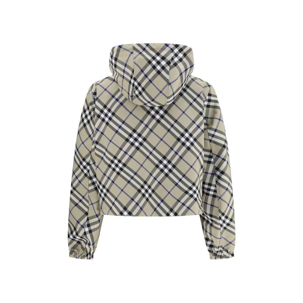 Burberry’s Reversible Jacket is a short, versatile style with an adjustable drawstring hood. The double-slider front zipper allows for convenient closure, while zippered side welt pockets offer functionality. Elasticized cuffs and an adjustable drawstring hem allow for a customized fit. The double-sided design features a monochrome pattern on one side and the iconic Check Archivio on the other, with The Equestrian Knight logo embroidered on the front. The regular fit ensures comfort and practicality.