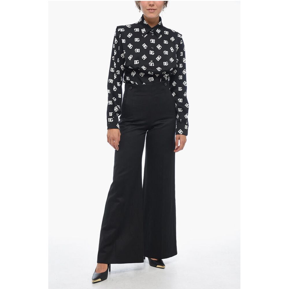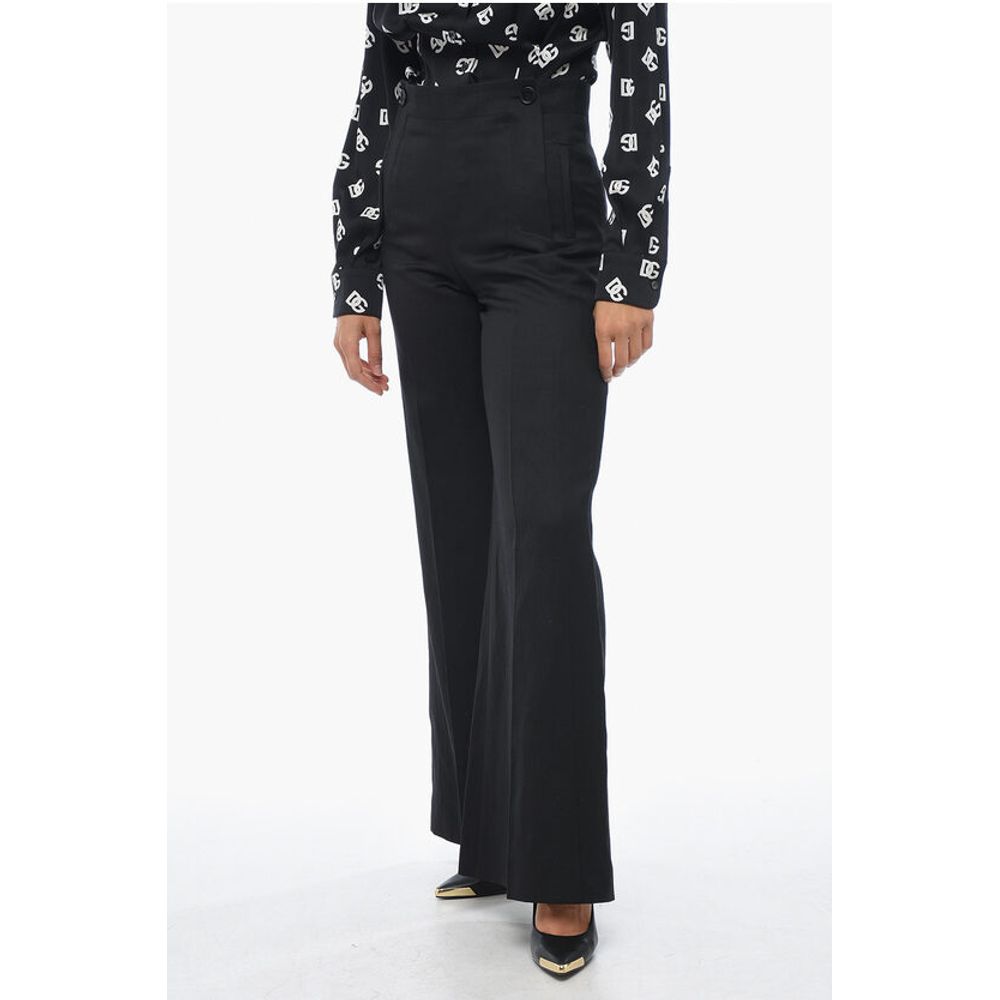 Chloé Flax Blend Palazzo Pants with Double Buttoning