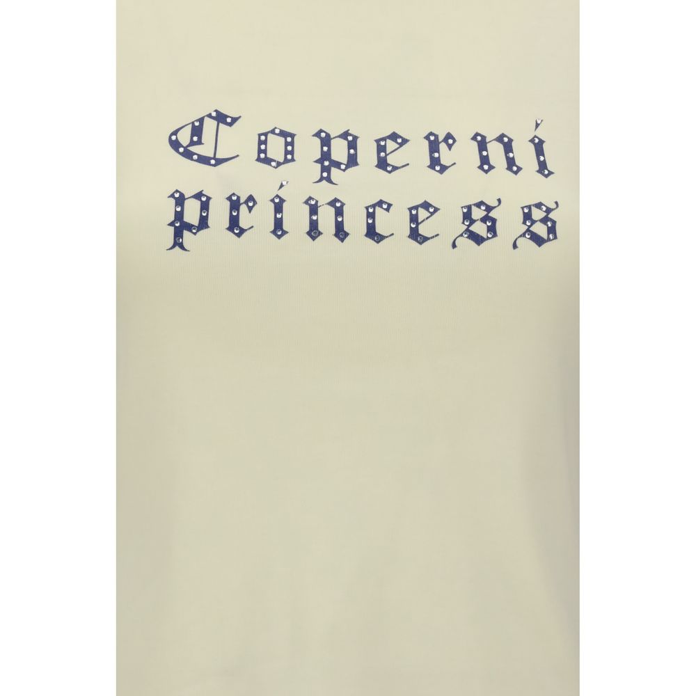 The Princess T-Shirt by Coperni is an essential garment with a bright, contemporary character. Made from cotton, it features a classic crew neck and ribbed finished hems for a comfortable and defined fit. Embellishing the design is the "Coperni Princess" lettering on the front, decorated with bright rhinestones that add a glam and ironic touch. A perfect T-shirt to express personality with style, even in the most casual looks.