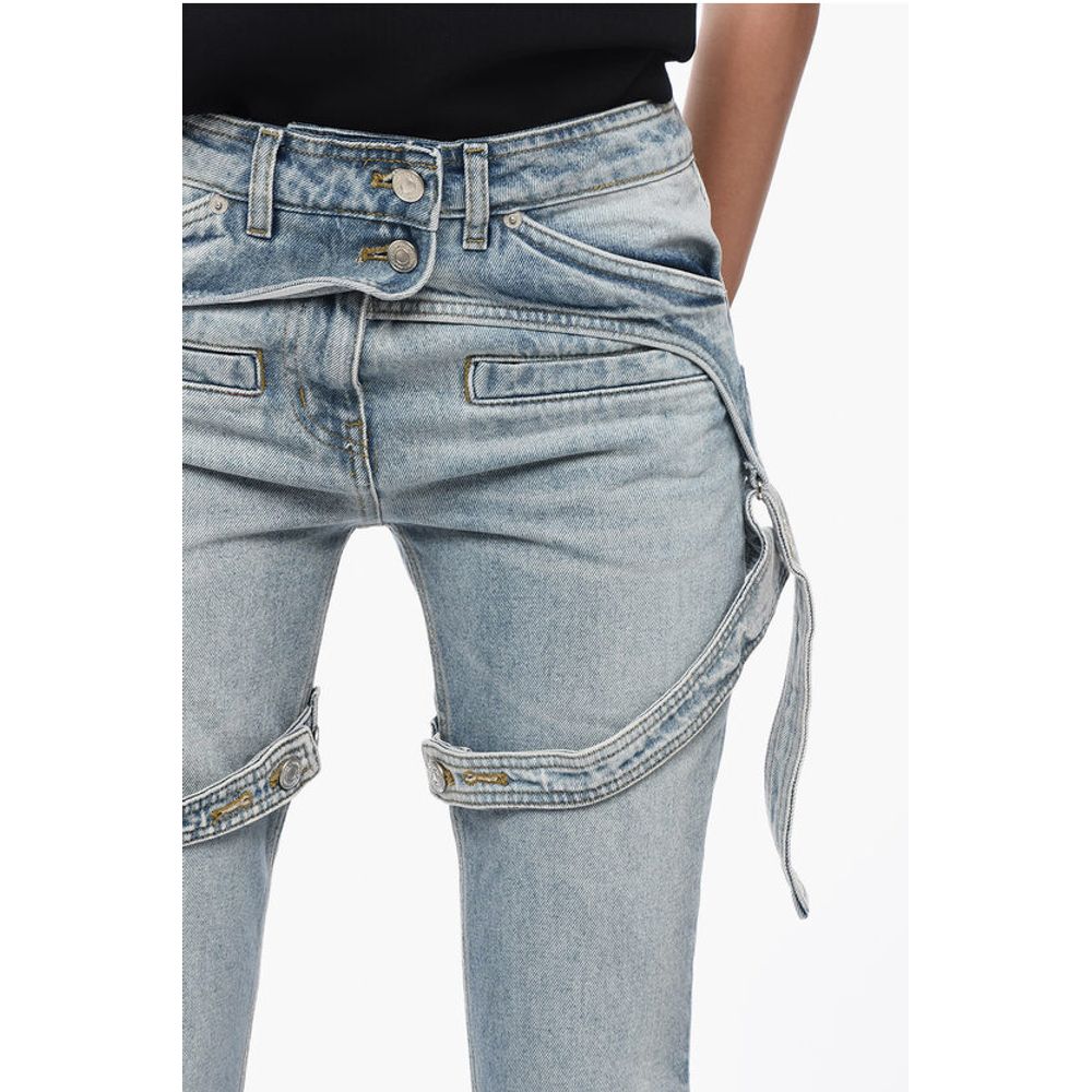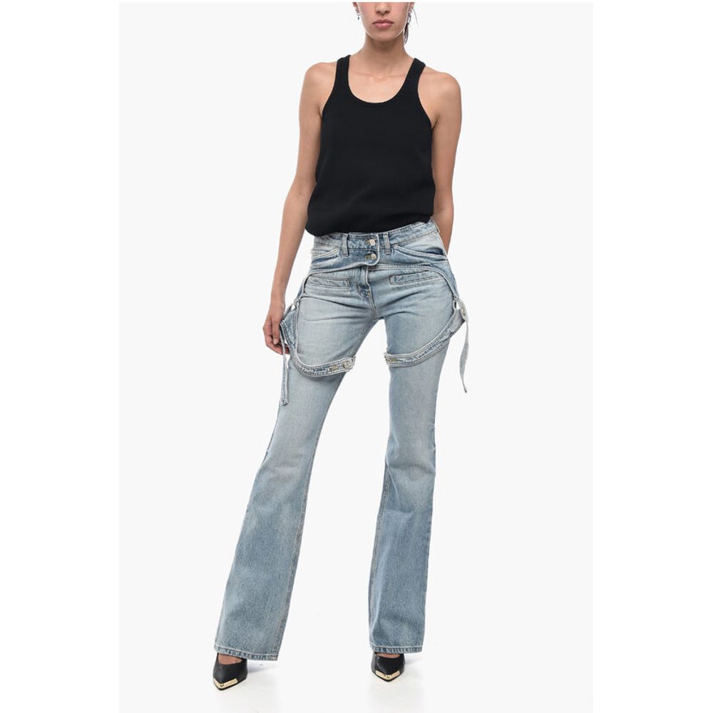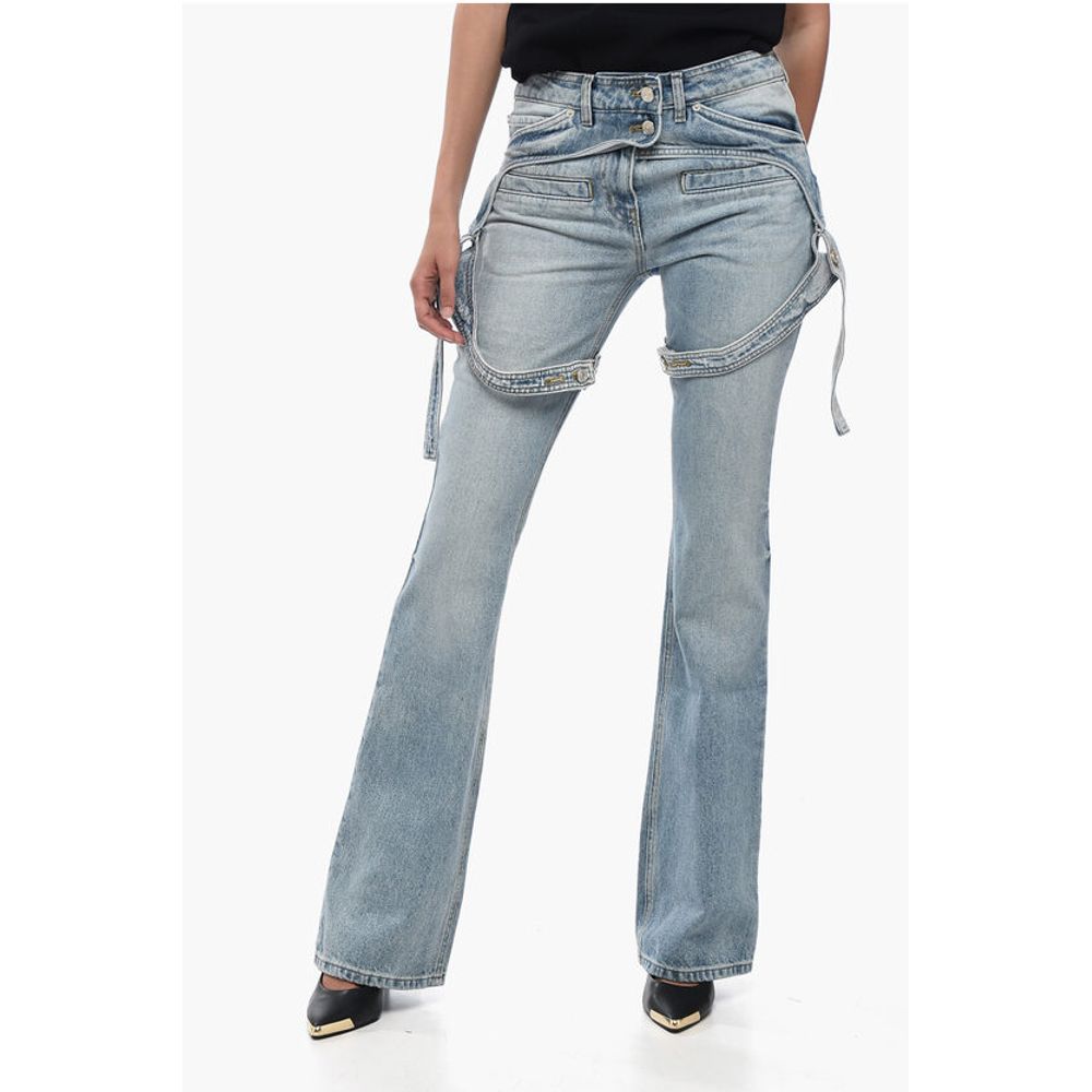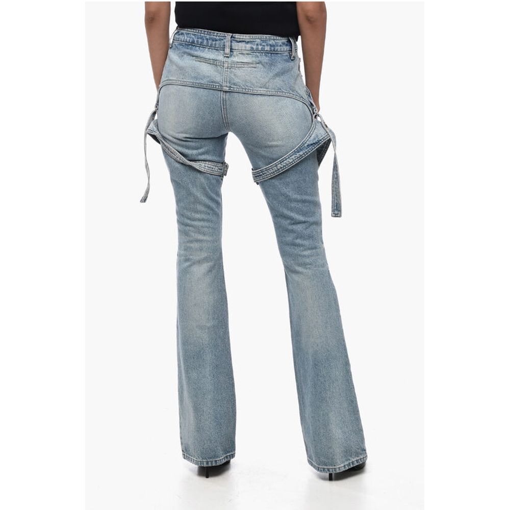 Courrėges Solid Color RACER Bootcut Jeans with Adjustable Chaps Straps