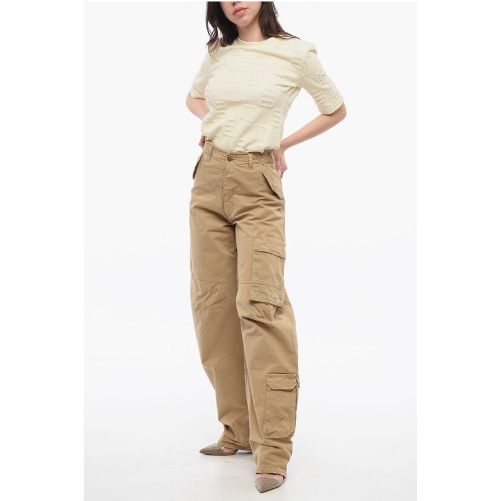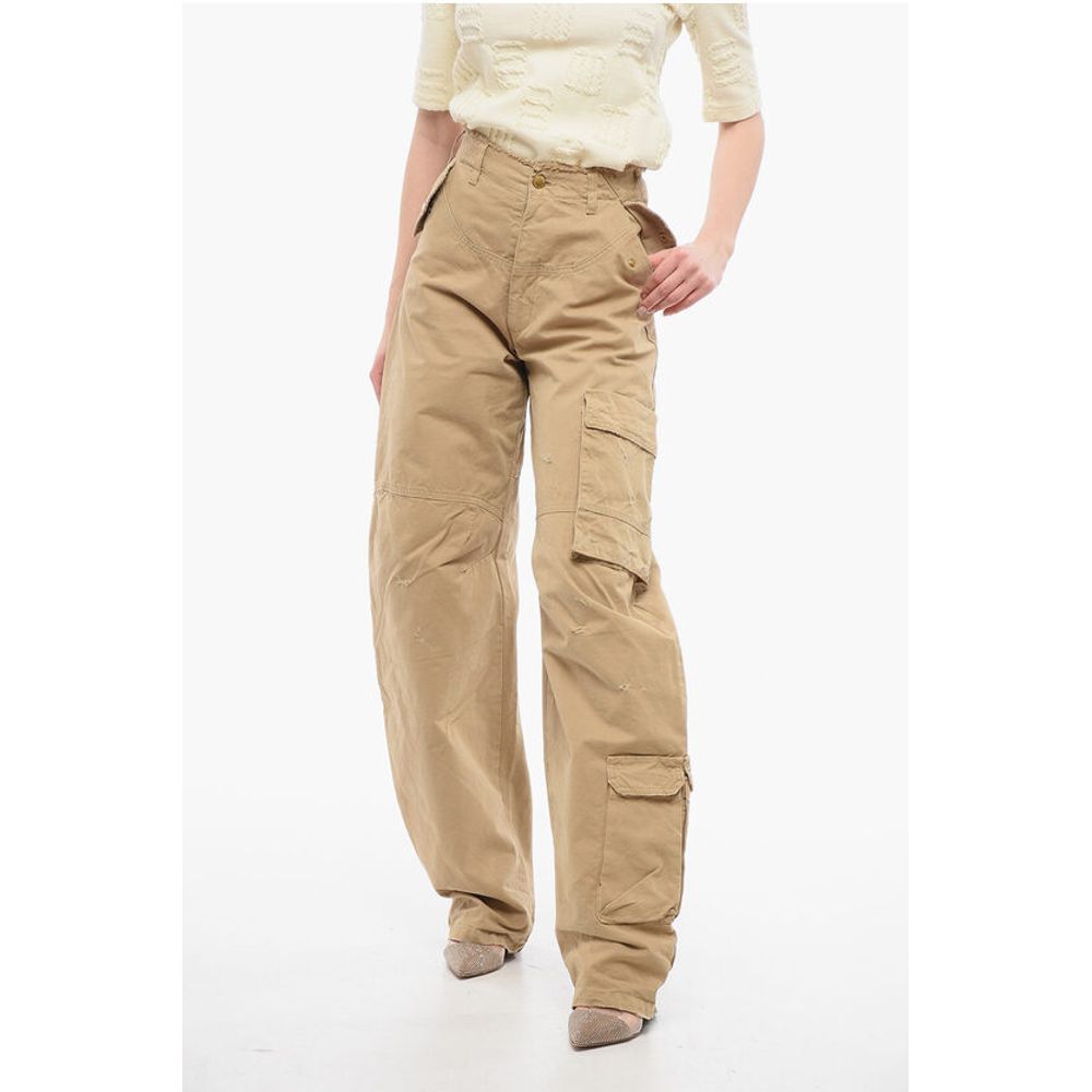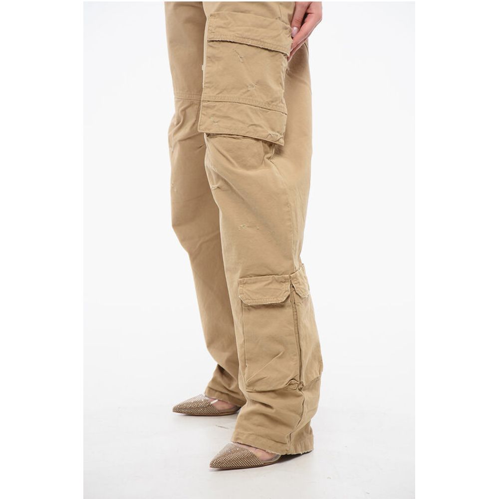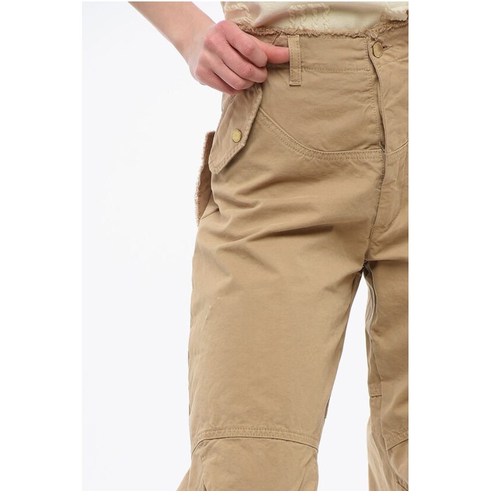 Darkpark Frayed Hem Cotton ROSALIND Cargo Pants with Logo-Buttons