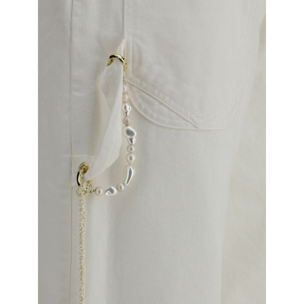 Darkpark’s Lisa Chain Jeans are a bold and sophisticated garment, with the classic five-pocket style combining practicality and style. The front zipper and button closure, along with belt loops on the waistband, ensure a comfortable fit. The pearl chain detail attached to the gangue with a hook adds a touch of elegance and originality, while the raw-cut hem and high waist with straight leg create a modern, sleek silhouette. These jeans are ideal for a casual-chic look with a touch of luxury, perfect for those looking for a distinctive, on-trend garment.