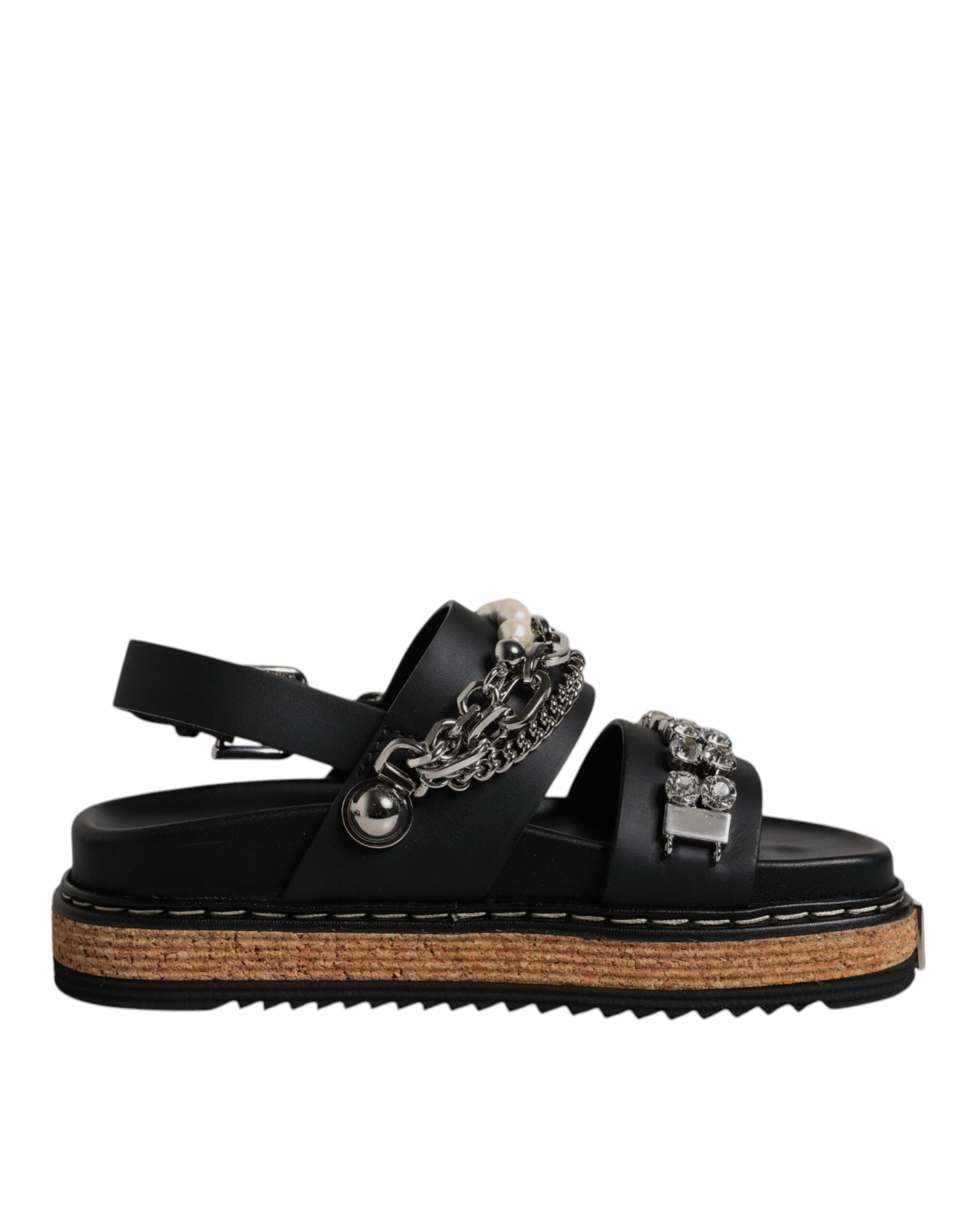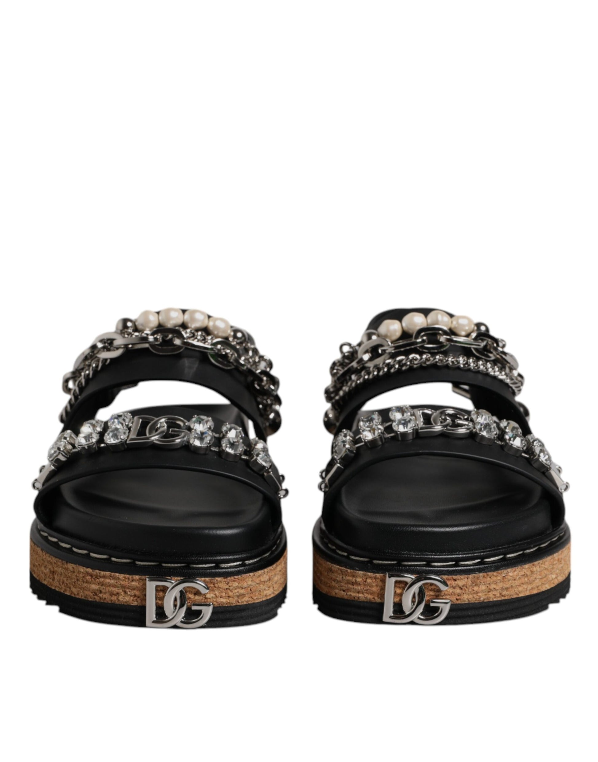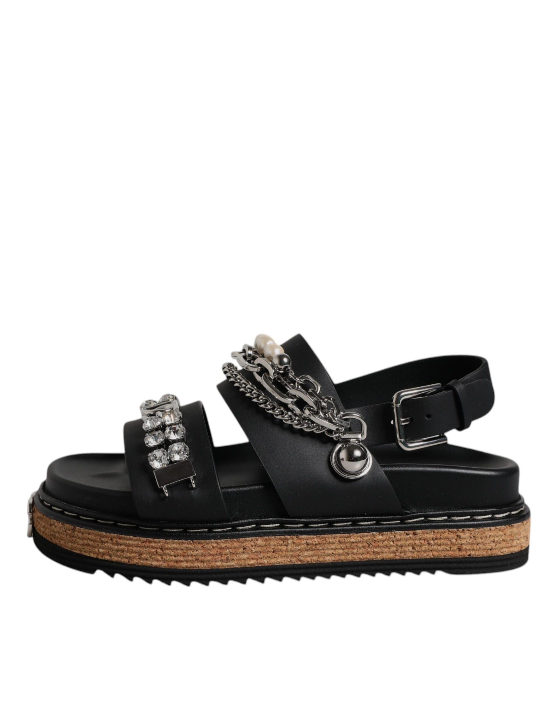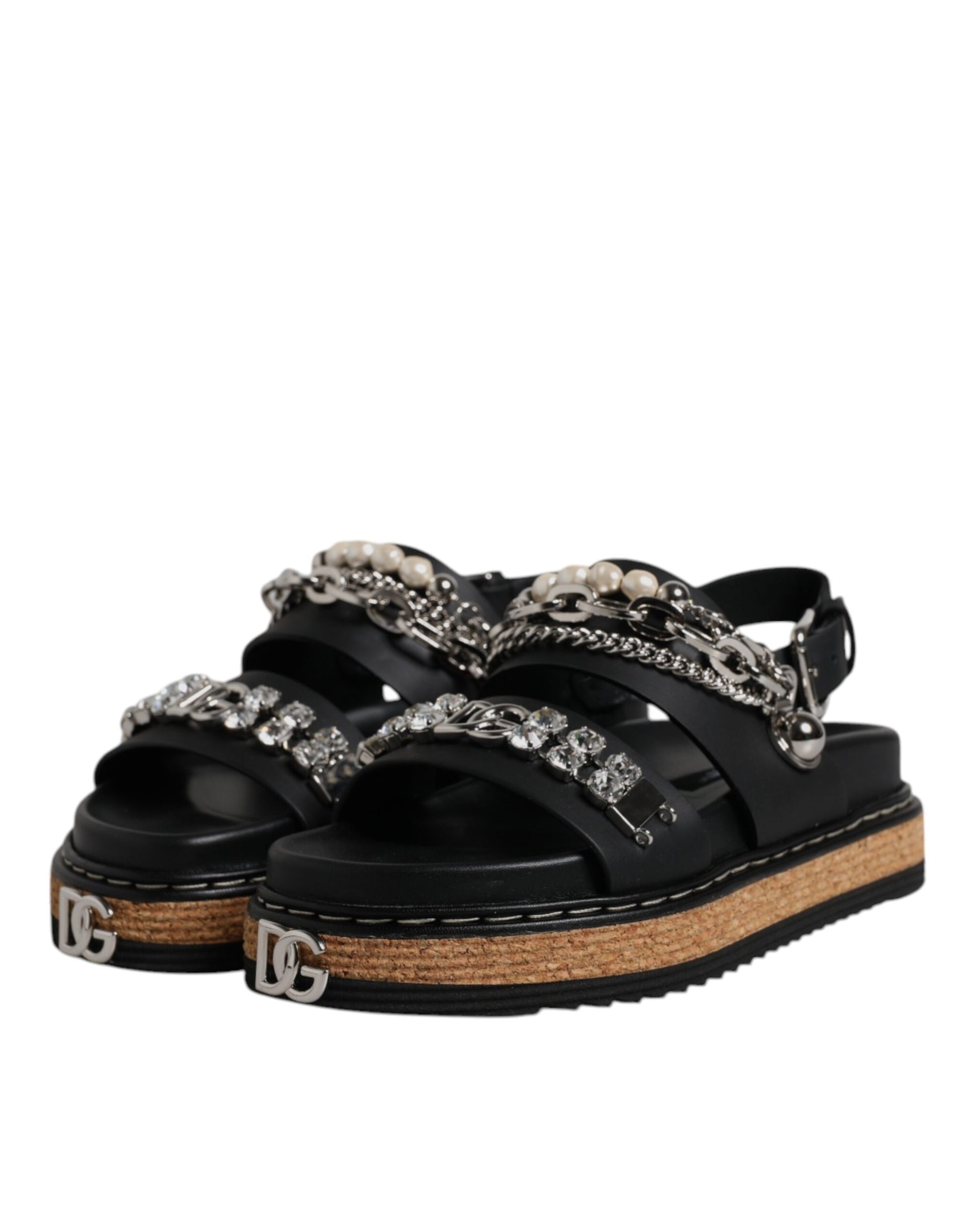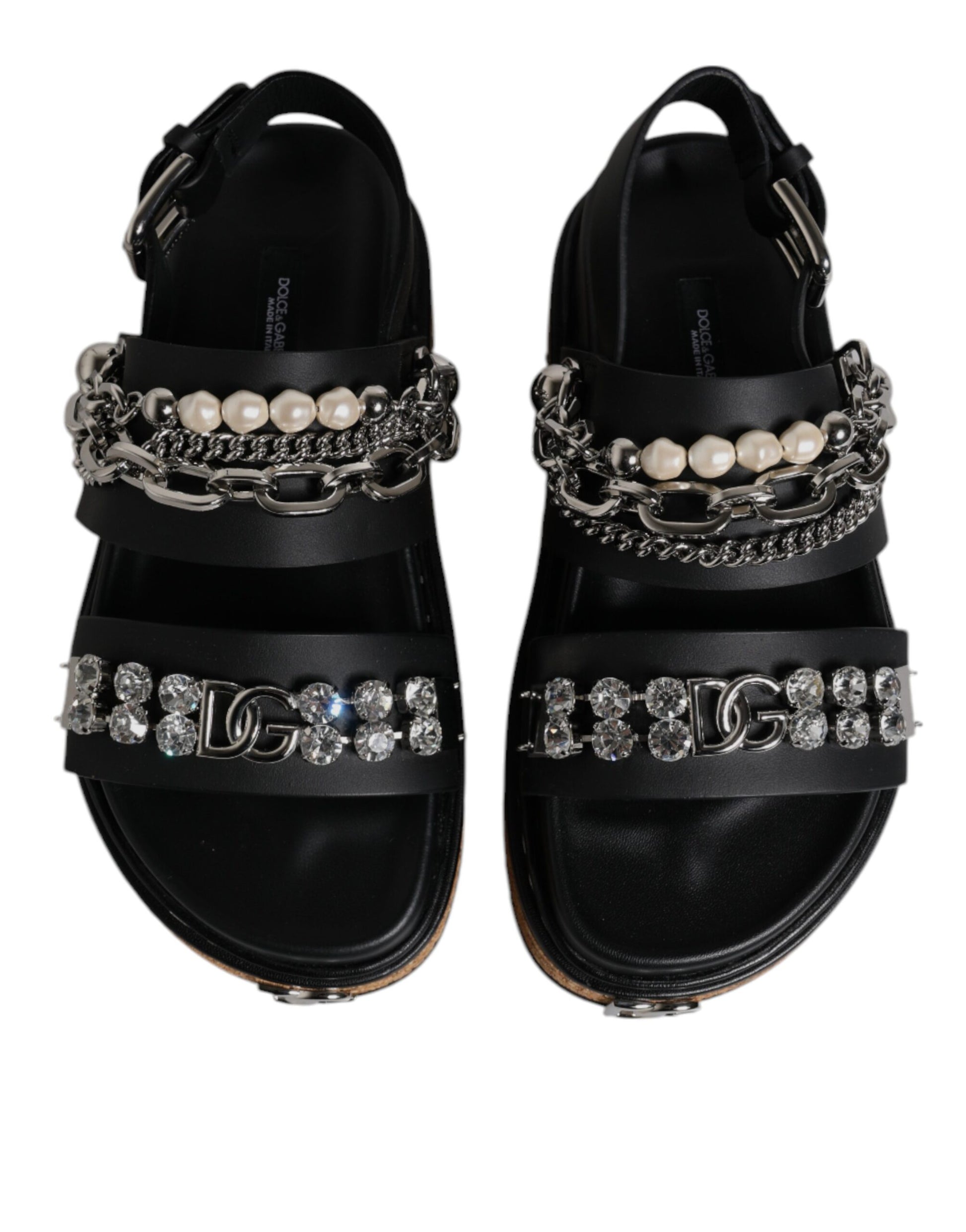 Dolce & Gabbana Black Crystal Embellish Strap Sandals Shoes