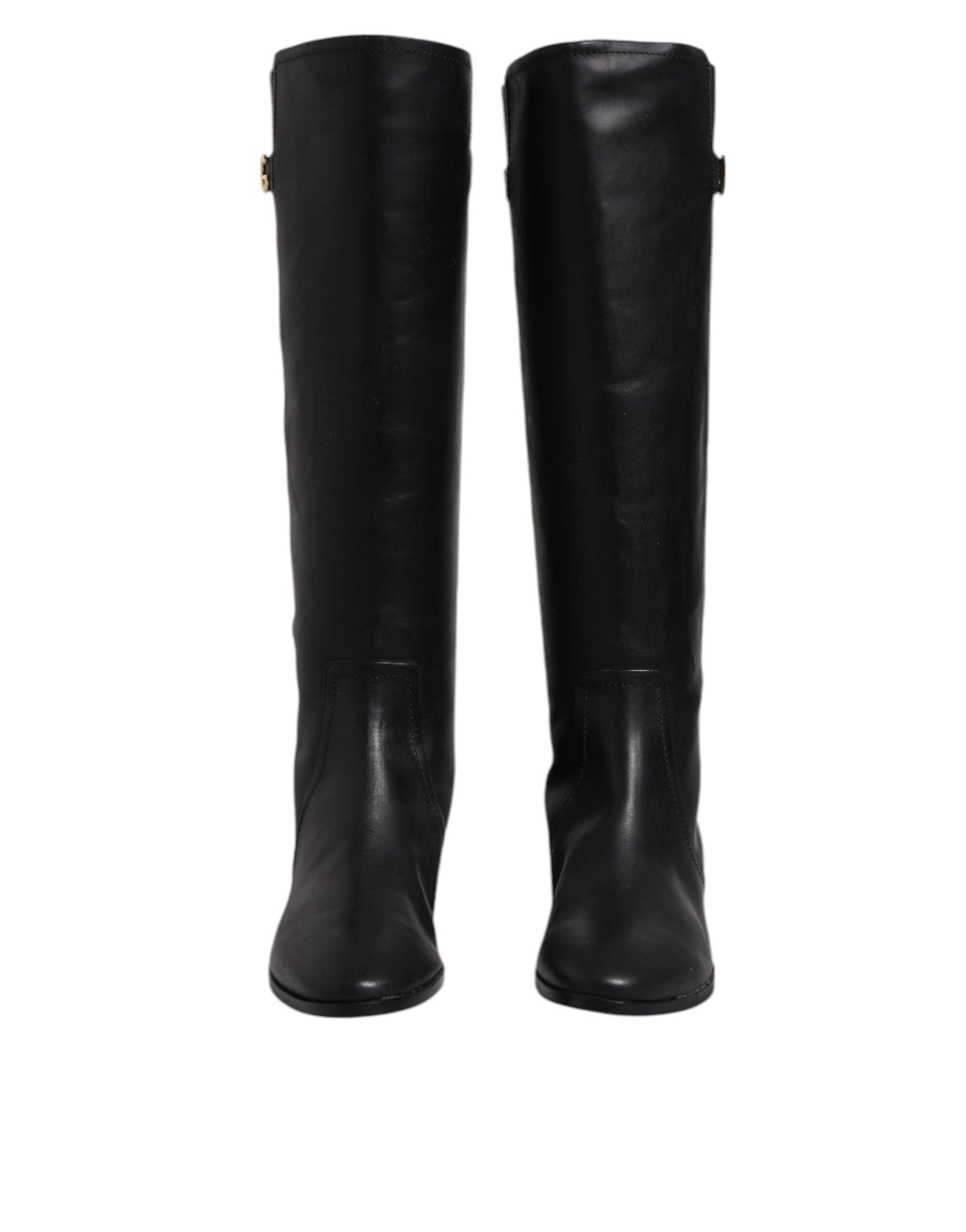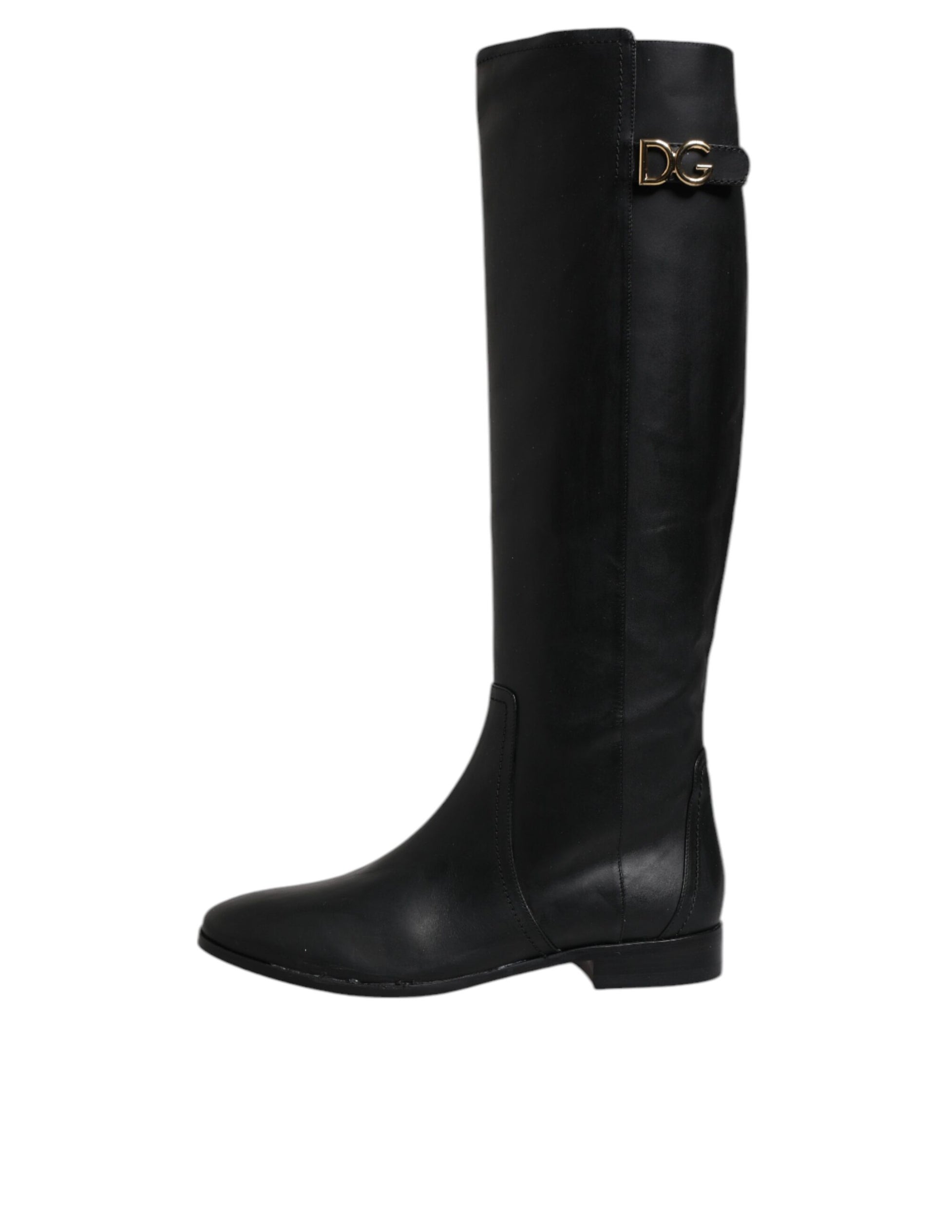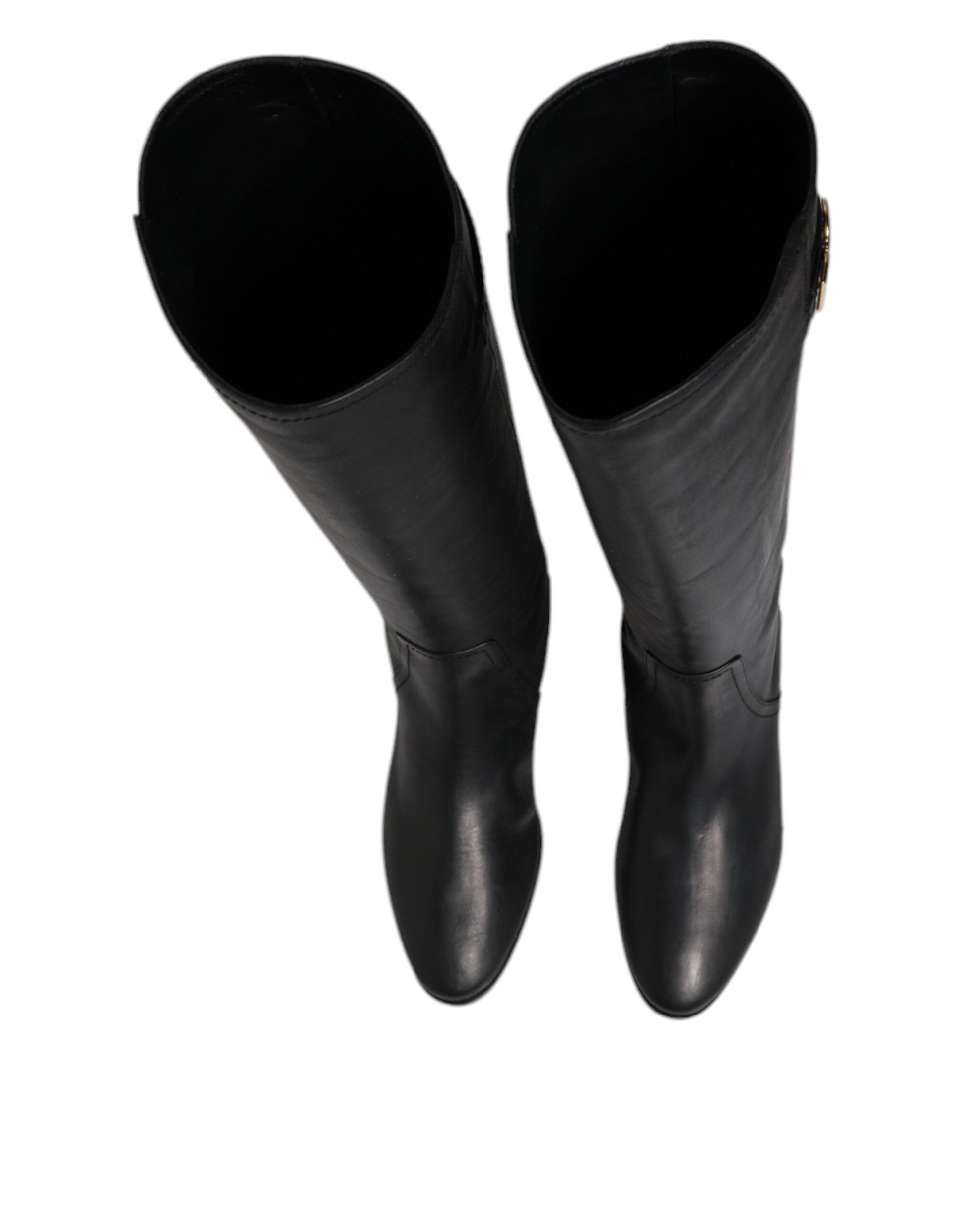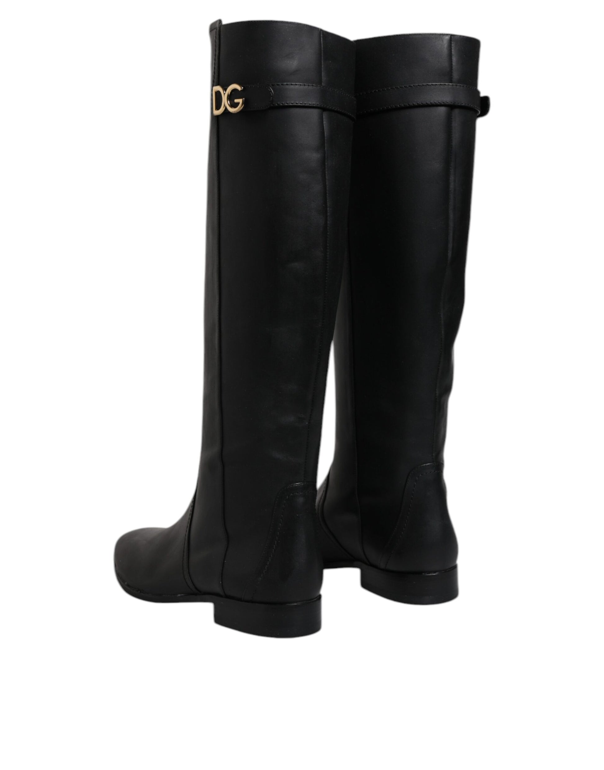 Dolce & Gabbana Black DG Logo Calf Leather High Boots Shoes