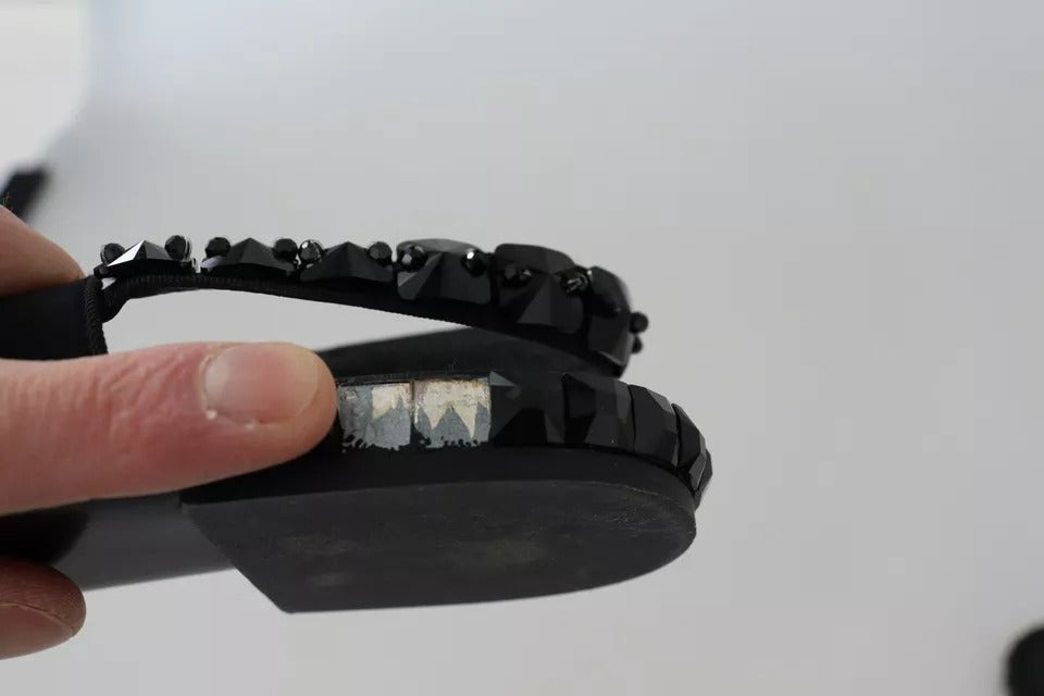 Dolce & Gabbana Black Flats Crystal Slingback Charmeuse Shoes