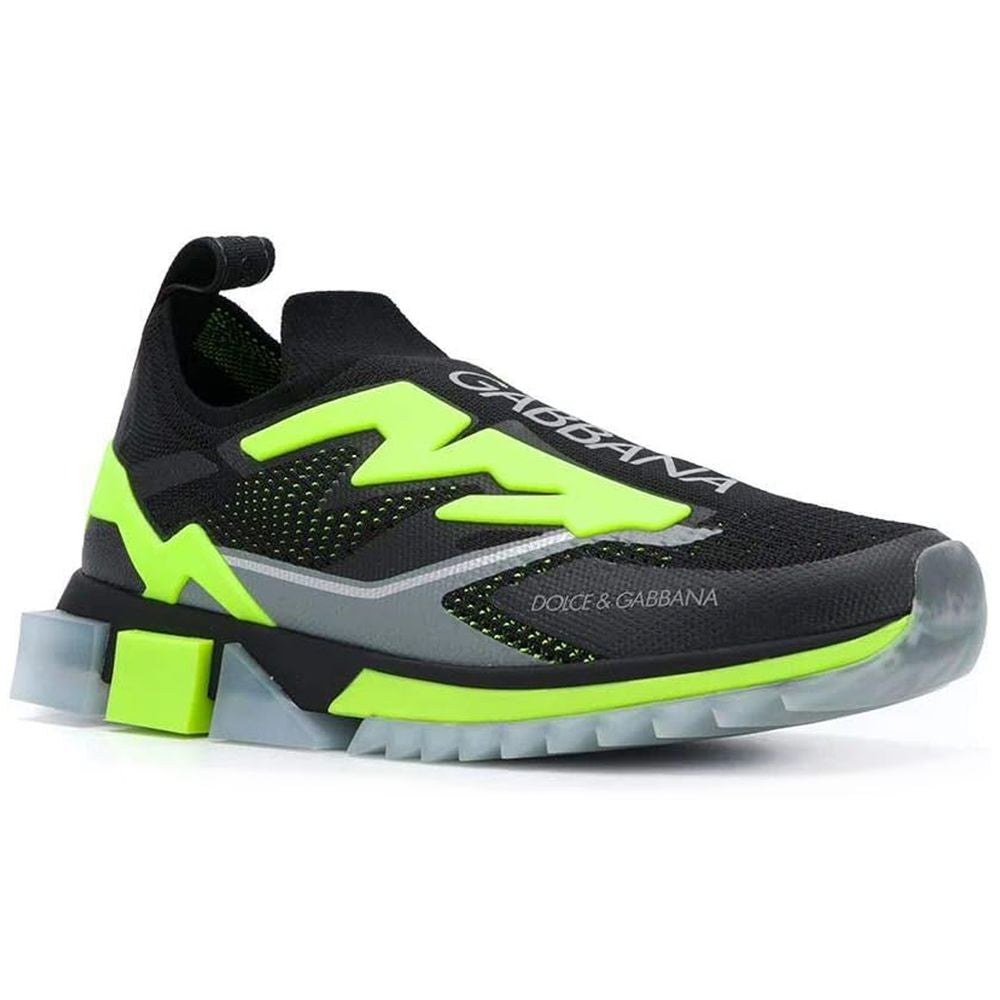 Dolce & Gabbana stretch mesh sneakers with contrasting logo print and two-tone geometric rubber sole.