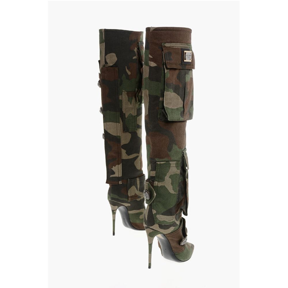 Dolce & Gabbana Camouflage Denim Boots with Pockets 11cm
