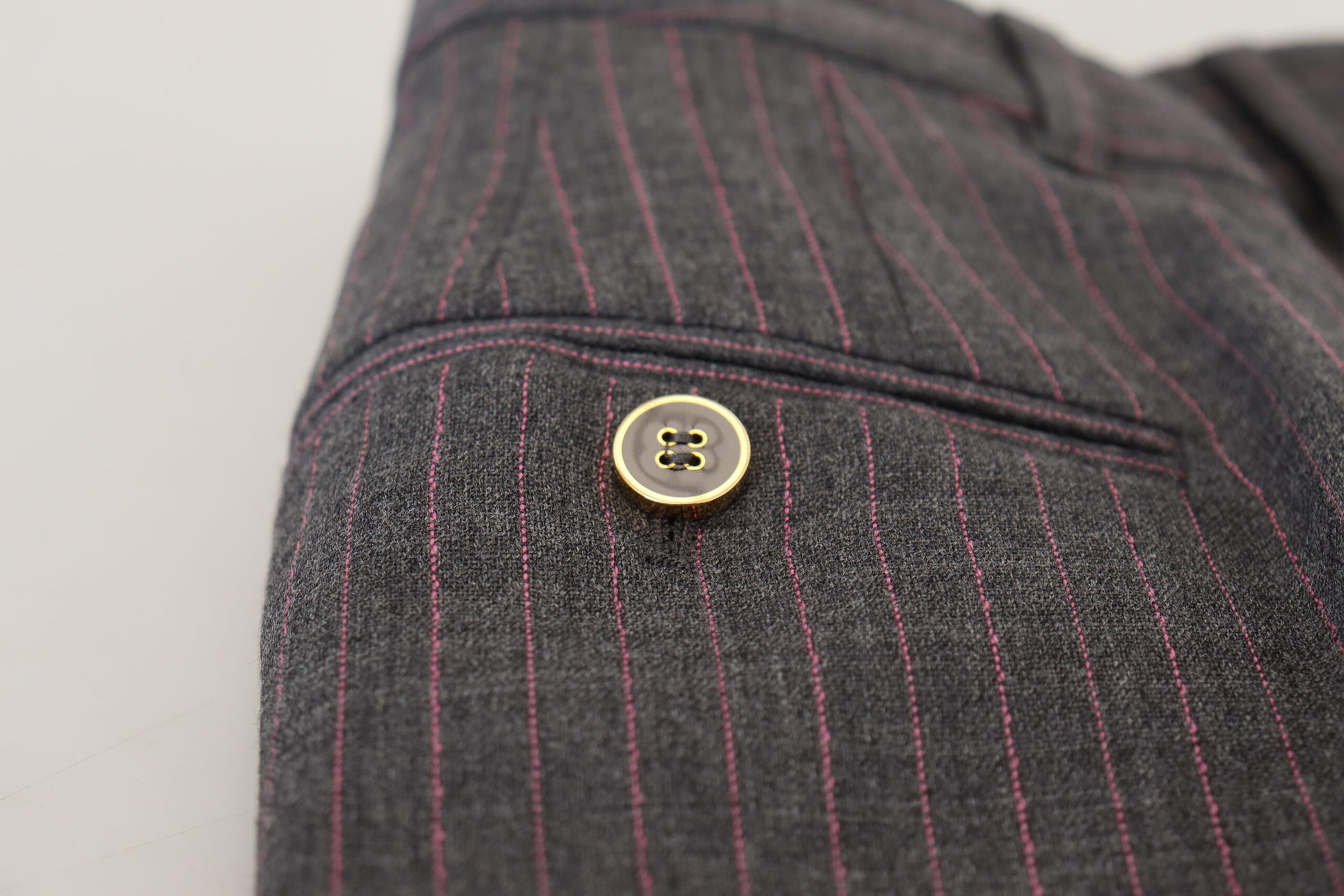 Step into the world of luxury with these elegant mid waist striped tapered pants from the exclusive MainLine Collection by Dolce & Gabbana. Designed with a discerning fashionista in mind, these pants boast a sleek regular fit, topped with a subtle gray stripe pattern that exudes sophistication. Crafted from high-quality materials with a touch of stretch for comfort, they feature a classic zipper and button closure and are adorned with discreet logo details. Perfect for creating a refined look, these pants blend traditional tailoring with a modern twist, reflecting Dolce & Gabbana’s renowned Italian craftsmanship.