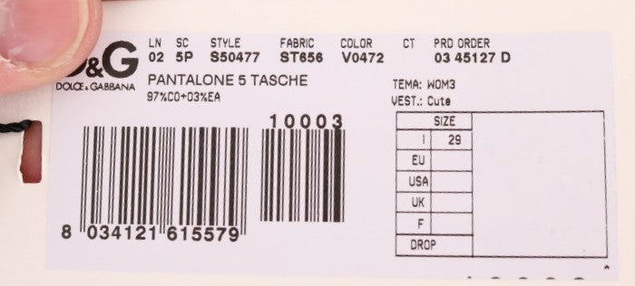 Step into comfort and luxury with these stunning trousers from Dolce & Gabbana. Crafted with the utmost attention to detail, this pair is perfect for elevating your everyday style or adding a touch of sophistication to your evening ensemble. The blend of cotton and elastane ensures both durability and a hint of stretch for the perfect fit.