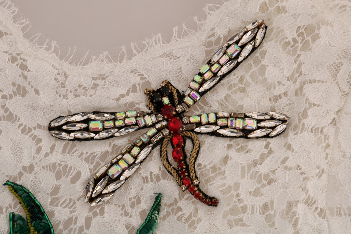 Dolce & Gabbana Elegant White Lace Embellished Mini Blouse