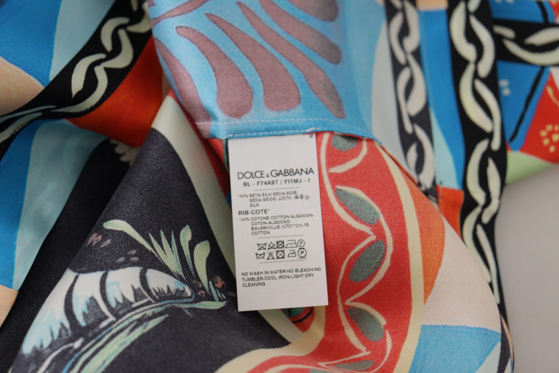 Discover the epitome of Italian luxury with this exquisite top from the renowned house of Dolce & Gabbana. Impeccably crafted from 100% pure silk, this short sleeve blouse is not just a garment, but a piece of art that showcases a vibrant multicolor Soldier Carretto design. A perfect blend of style and sophistication, this top is sure to enrich your attire with its unique logo details and unparalleled craftsmanship, all created in the heartland of fashion, Italy.
