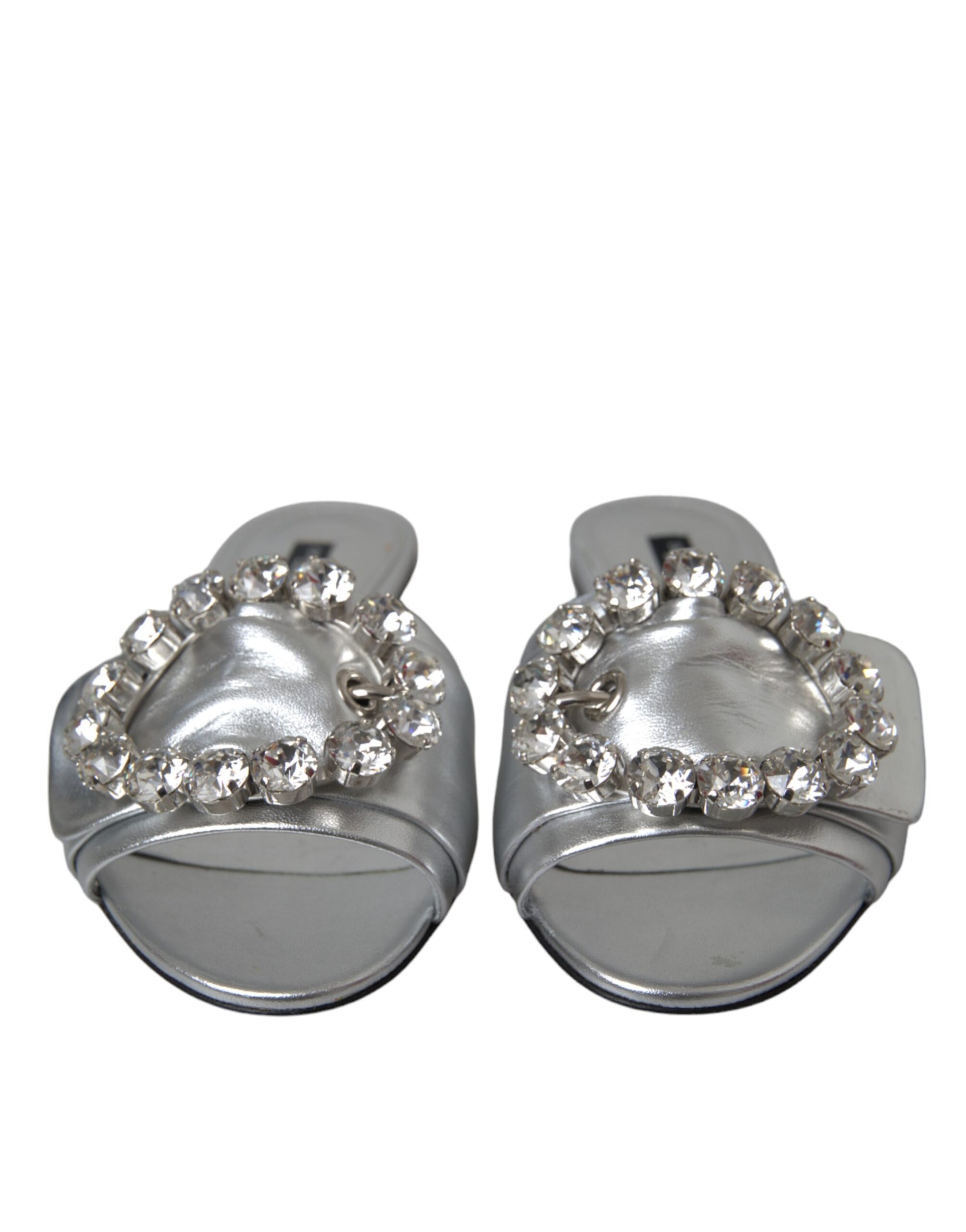 Dolce & Gabbana Silver Crystal Leather Flats Sandals Shoes