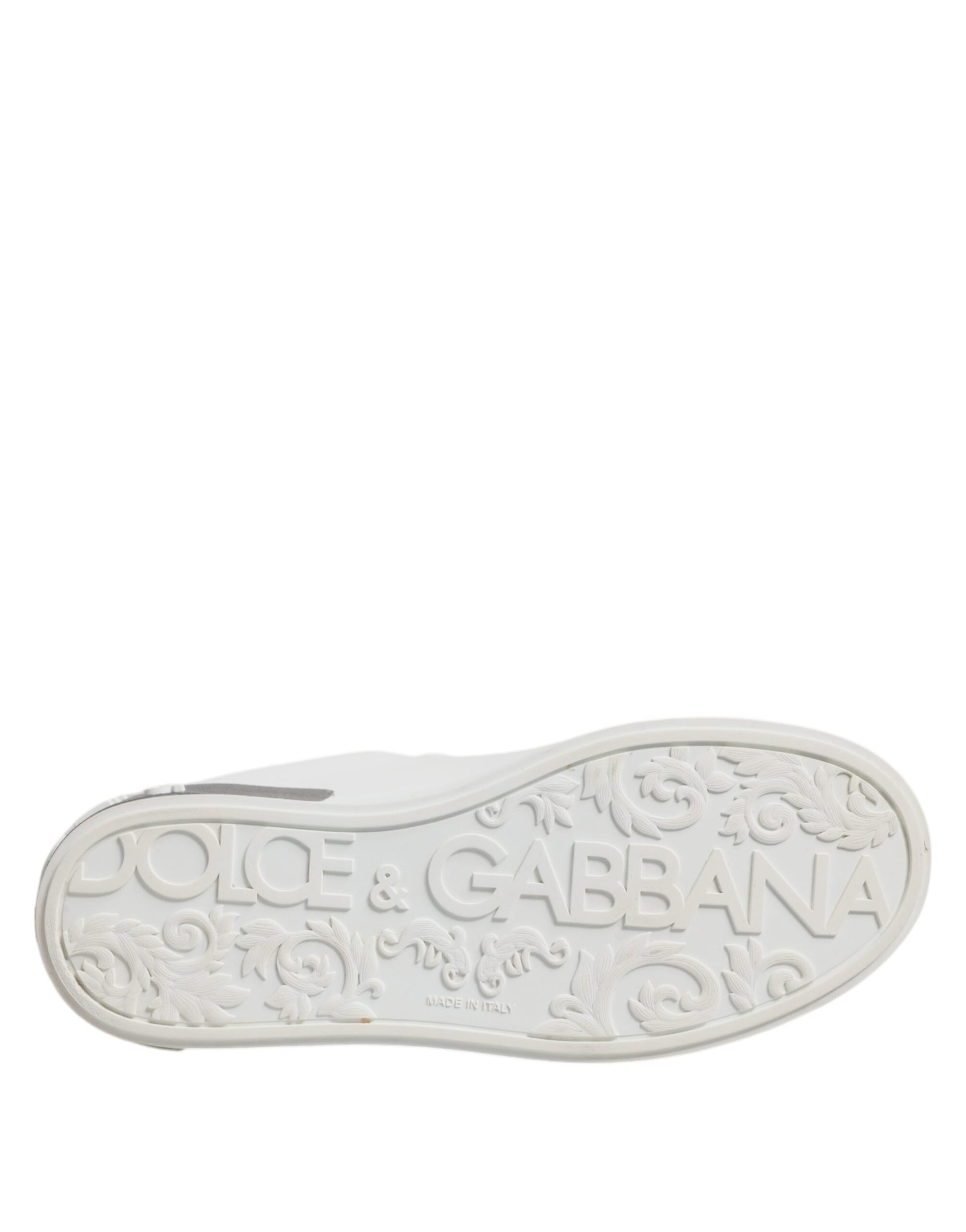 Dolce & Gabbana White Gray Leather Low Top Sneakers Shoes