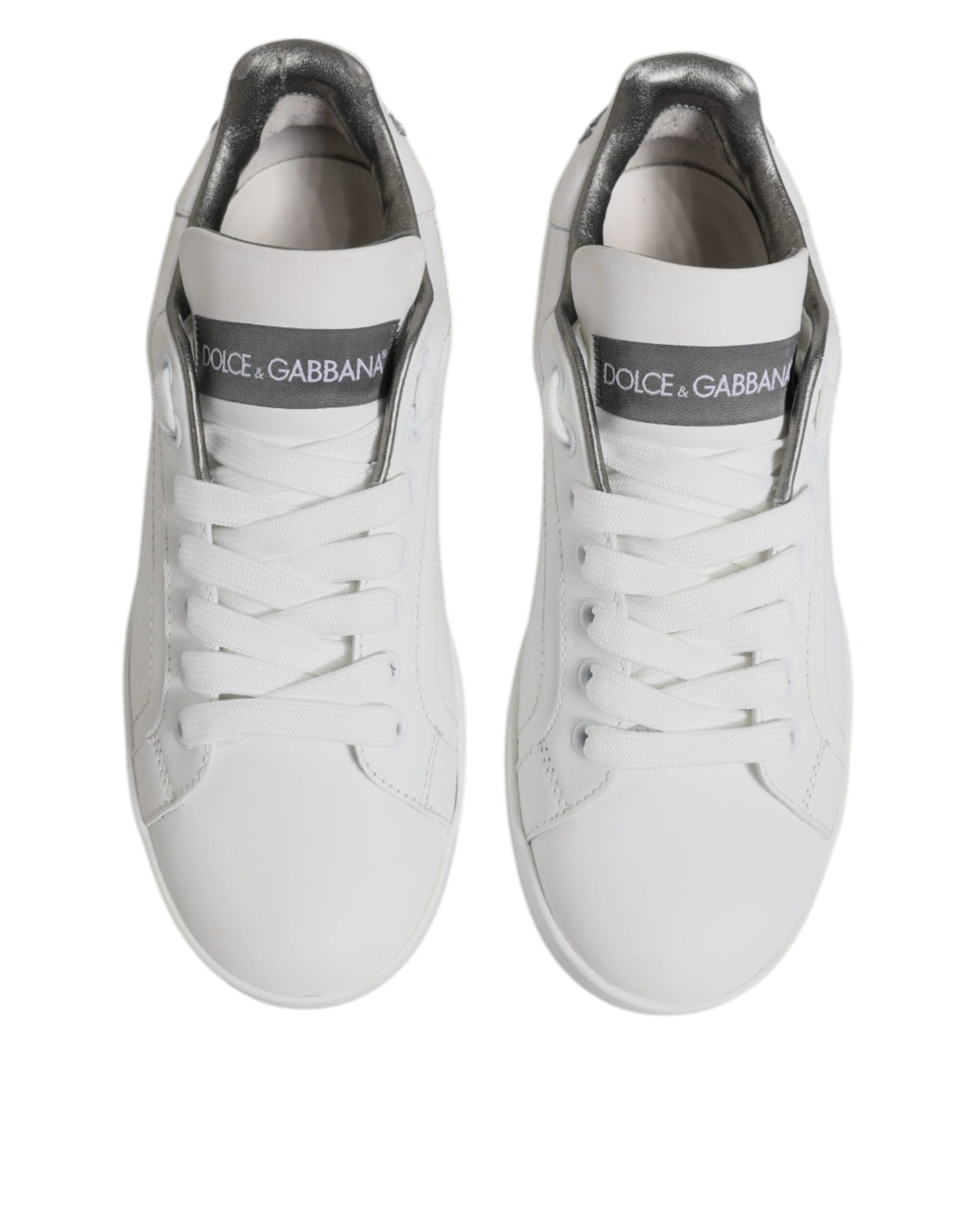 Dolce & Gabbana White Gray Leather Low Top Sneakers Shoes