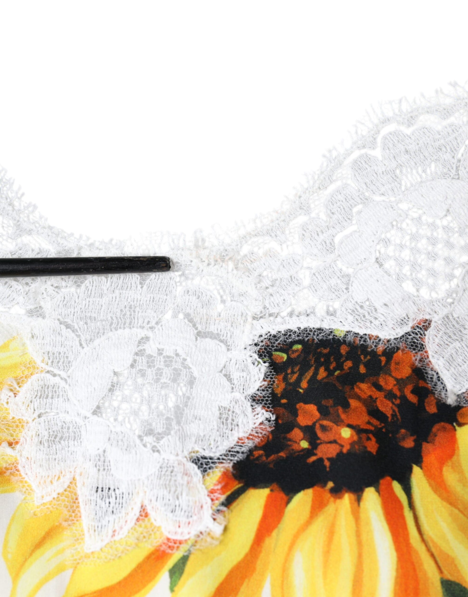 Dolce & Gabbana White Silk Sunflower Lace Sleeveless Tank Top