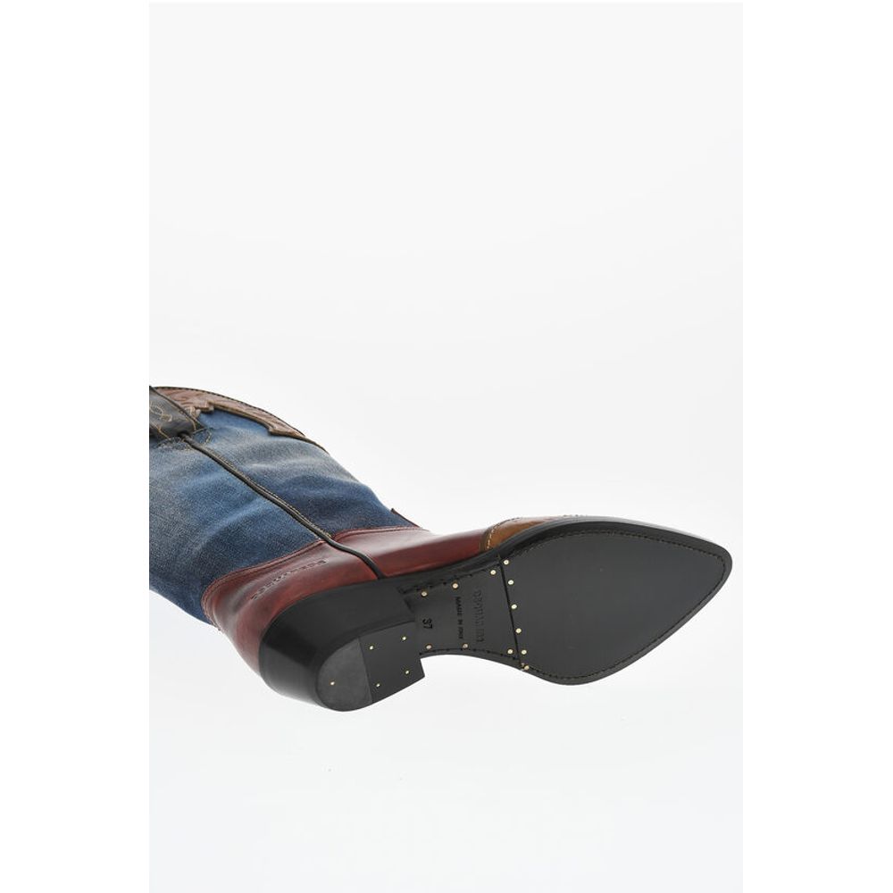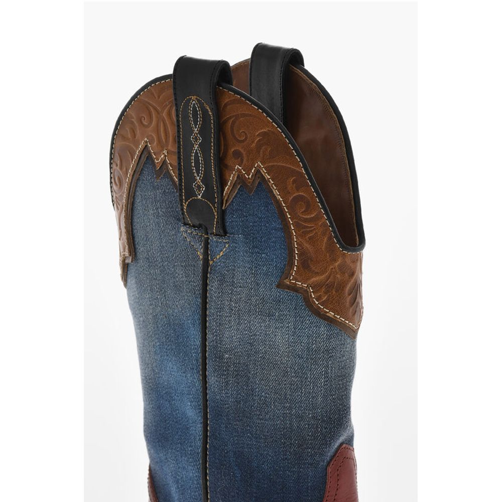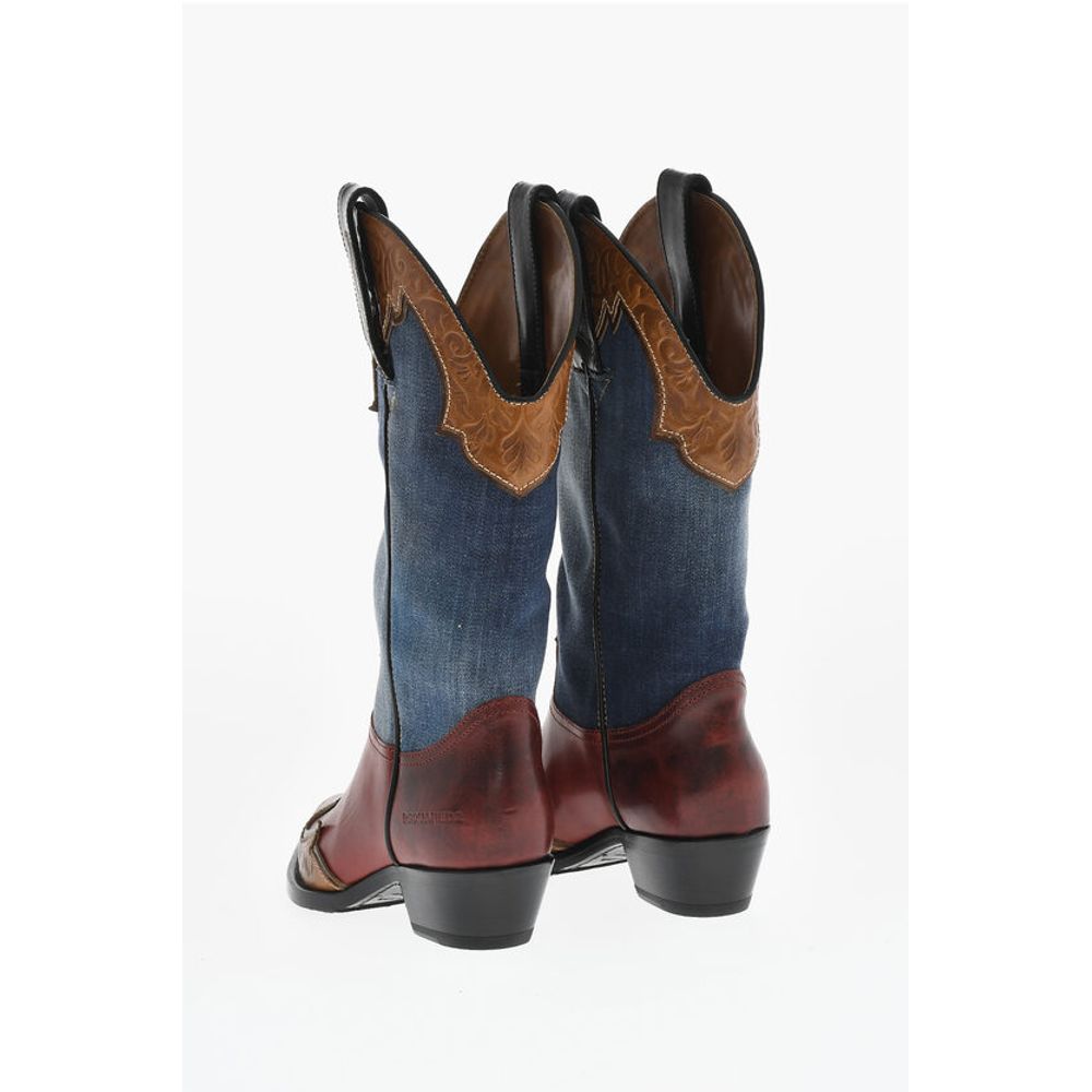 Dsquared² Denim VINTAGE Texan Boots With Leather Details