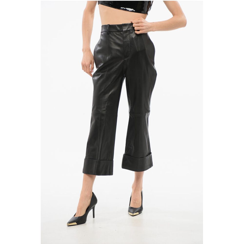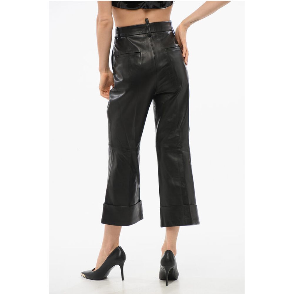 Dsquared² Leather Bootcut Cropped Fit Pants