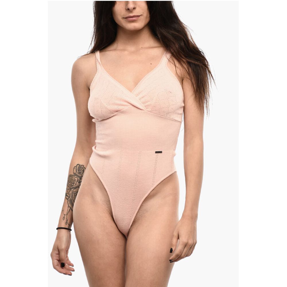 Dsquared² V-Neck Perforated Wool Body With Ribbed Details