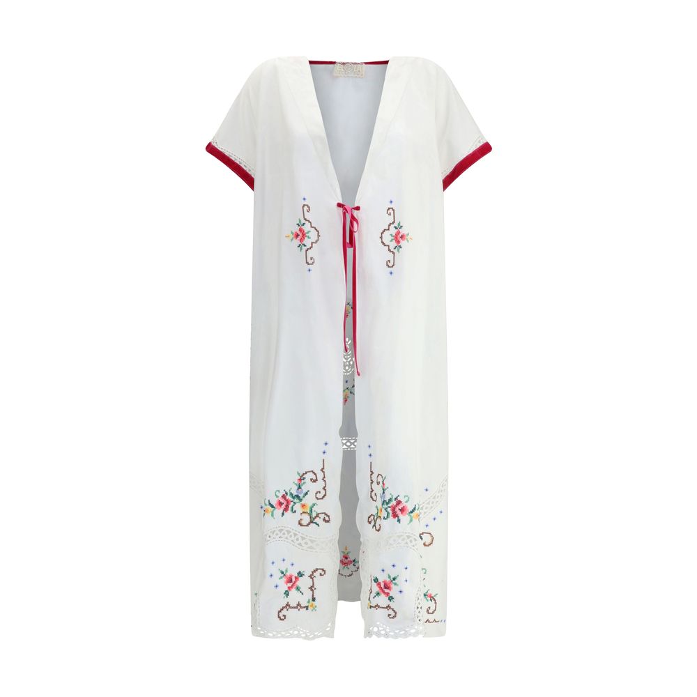 Ella’s Linen Long Jacket is an elegant and refined piece with a sleeveless pattern that flatters the silhouette. Velvet details and nature-inspired embroidery on the back add an artistic and sophisticated touch. The hem with tassel appliqués gives an original and dynamic finish, making this jacket perfect for those seeking a unique and trendy look.