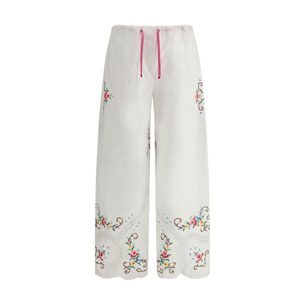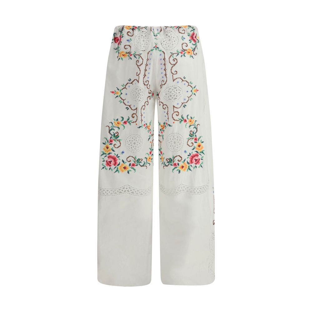Ella’s Pants are an elegant garment with assured comfort, featuring an adjustable velvet drawstring waistband that allows for a customized fit. The wide-leg style gives a fluid and sophisticated silhouette, while lace inserts and floral details made with the cross-stitch technique enrich the design, giving it a handcrafted and delicate touch. Perfect for creating an elegant yet relaxed look, this pant can be paired with a blouse or simple top for a refined yet never mundane outfit.