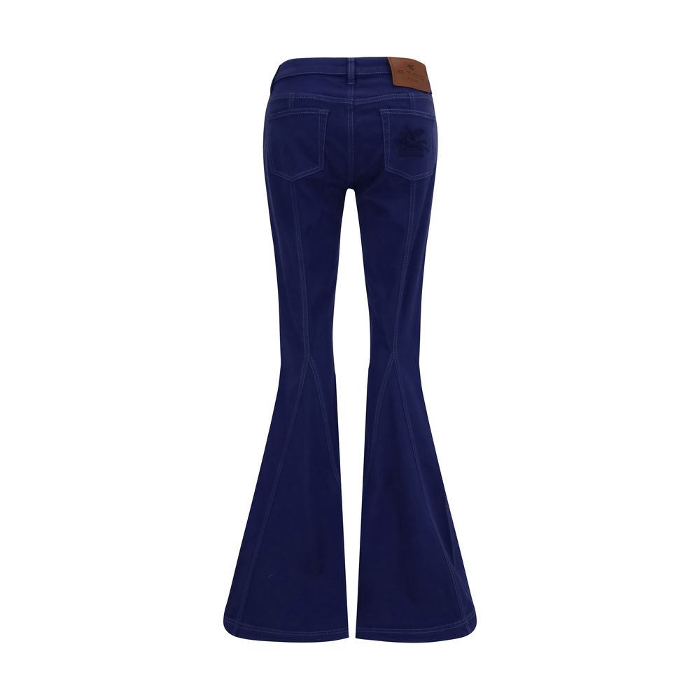 Etro’s Flare Pants reinterpret a timeless classic with the brand’s unmistakable style. Made in the traditional five-pocket pattern, they feature a front zip-and-button closure, waist loops and the iconic embroidered logo on the back, a distinctive detail that enhances their identity.
