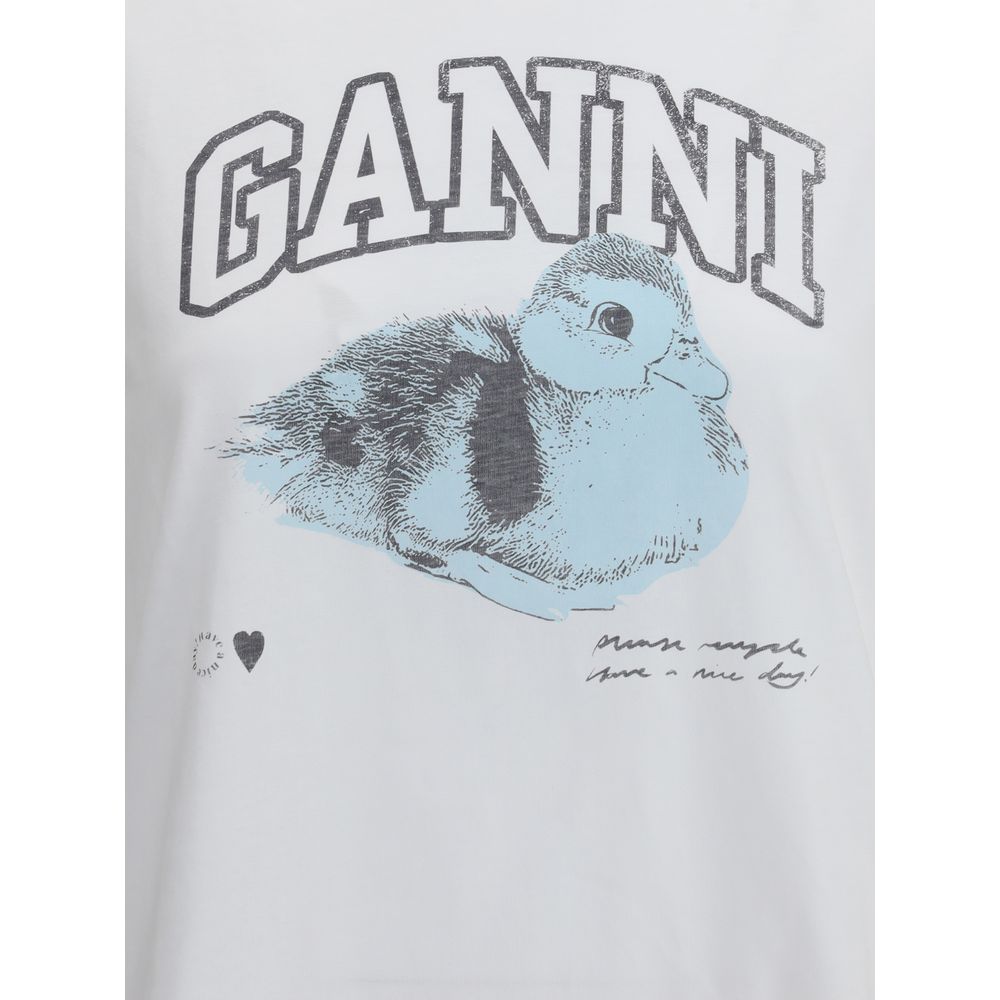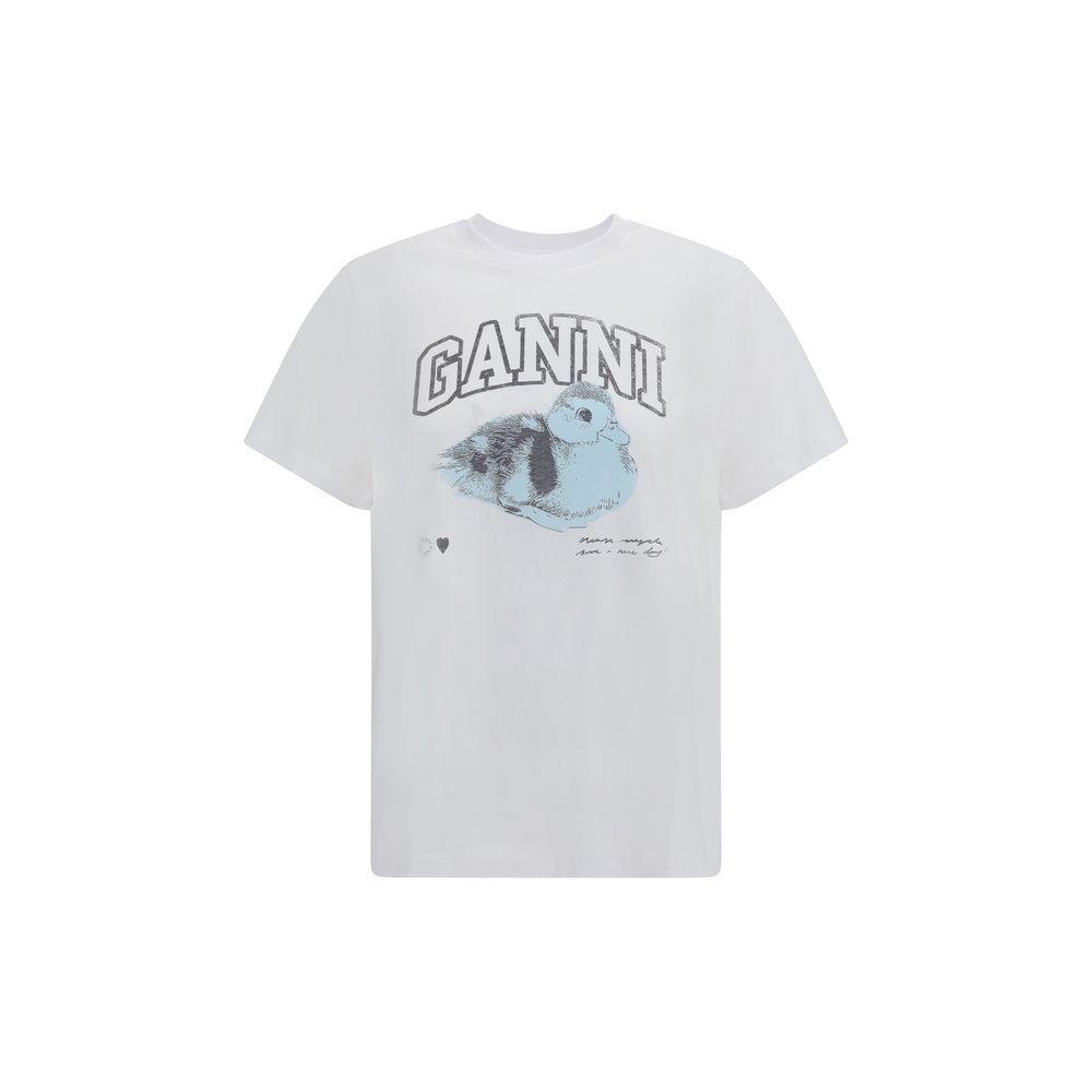Ganni’s Duckie T-Shirt is a garment with an ironic and distinctive spirit. Featuring a ribbed crew neck and sleeve hems, it features a vibrant paprella print on the front and the brand’s iconic signature. Made from cotton, it is perfect for adding a playful and recognizable touch to your casual look.