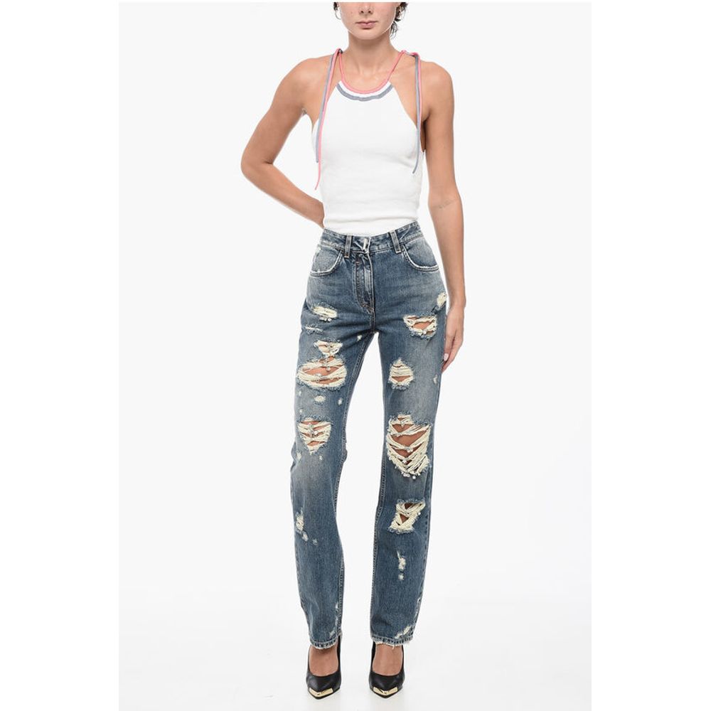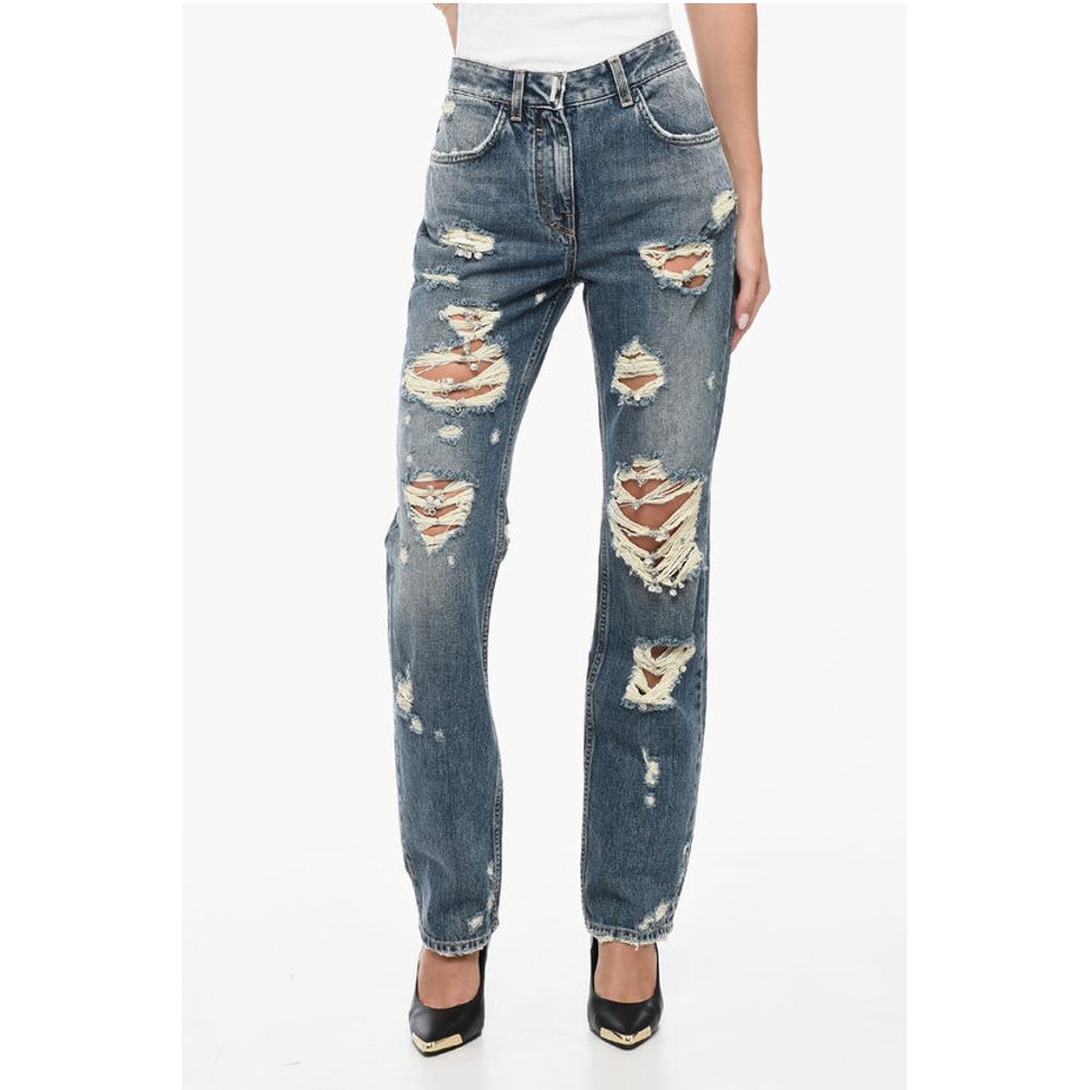 Givenchy Distressed Cotton Slim Fit Denims with Jewel Details 18cm