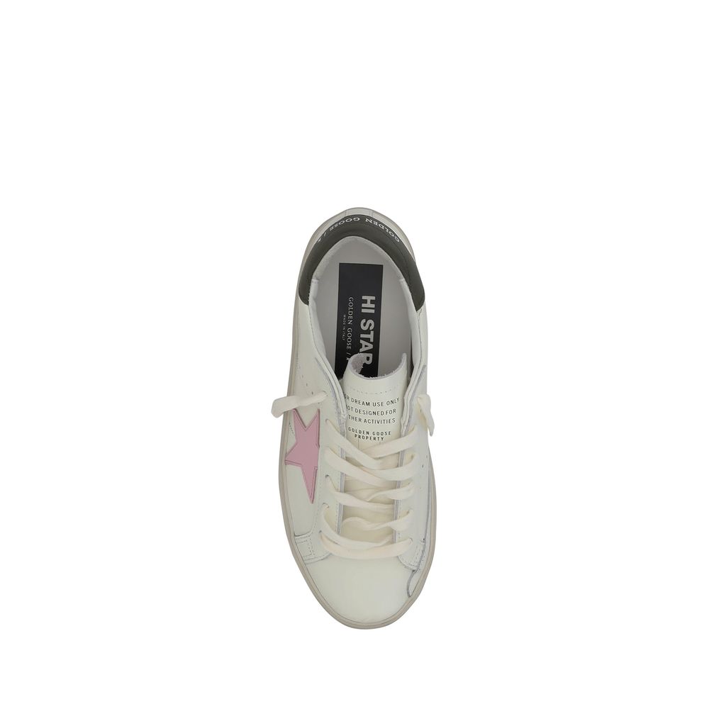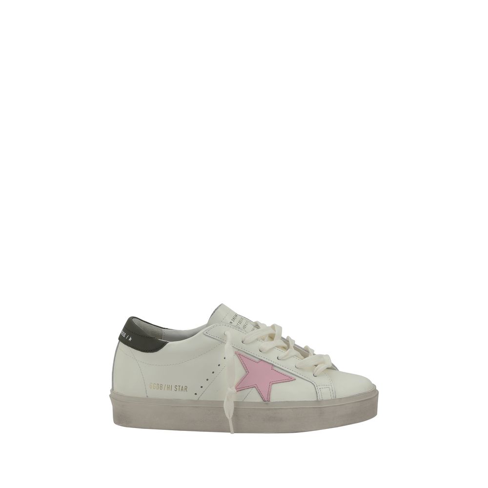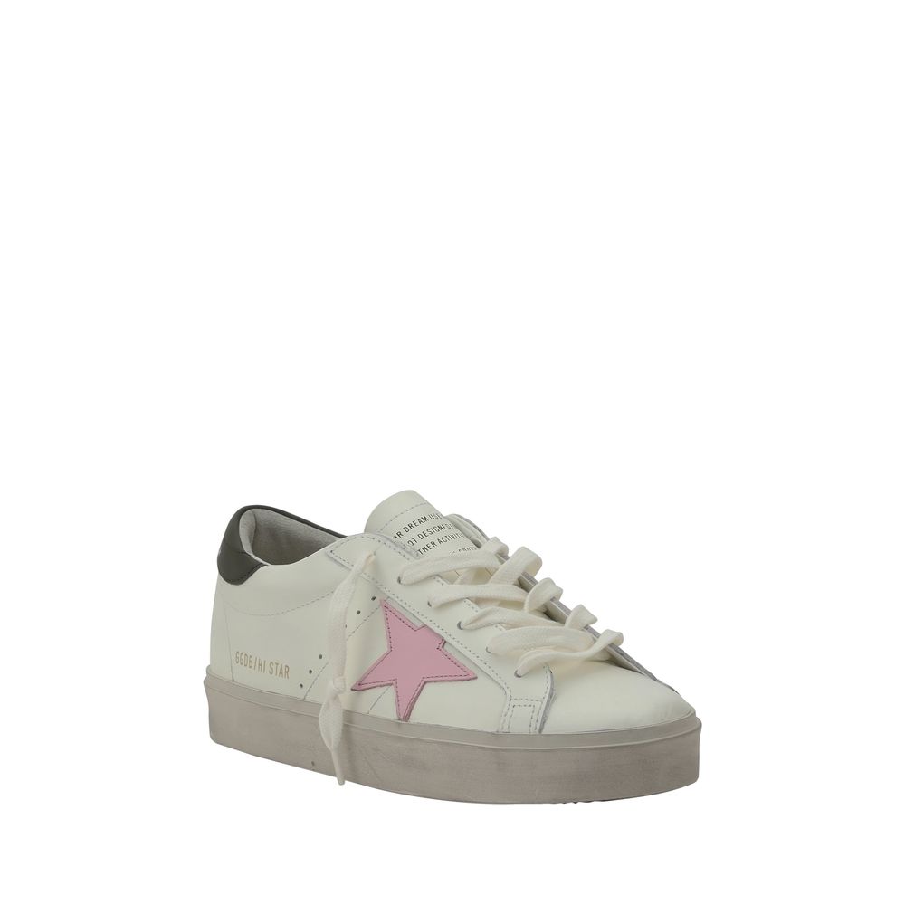 Golden Goose’s Hi Star Sneakers perfectly combine comfort and urban style. The lace-up closure and round toe ensure a practical and comfortable fit, while the platform sole not only offers stability but also adds a touch of momentum. The iconic star on the outer side panel, along with the press-on logo, lends a distinctive and recognizable element. The front tab is embellished with the iconic contrasting embroidered monogram, while suede inserts complete the design with a refined touch of elegance. A model that embodies the perfect fusion of aesthetics and functionality, ideal for those seeking an urban look without sacrificing quality.