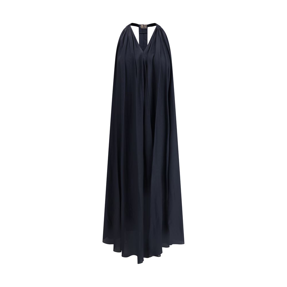 Hui Milano’s Long Dress is an elegant and refined, sleeveless garment with a flowing design that conforms to the bust and gently flares on the skirt. The wide V-neckline on the front lends a touch of discreet sensuality, while the back neckline, embellished with a band decorated with oriental motifs, adds a unique and distinctive detail. The added slip completes the look, providing comfort and a sophisticated effect. Perfect for special occasions or elegant evenings.