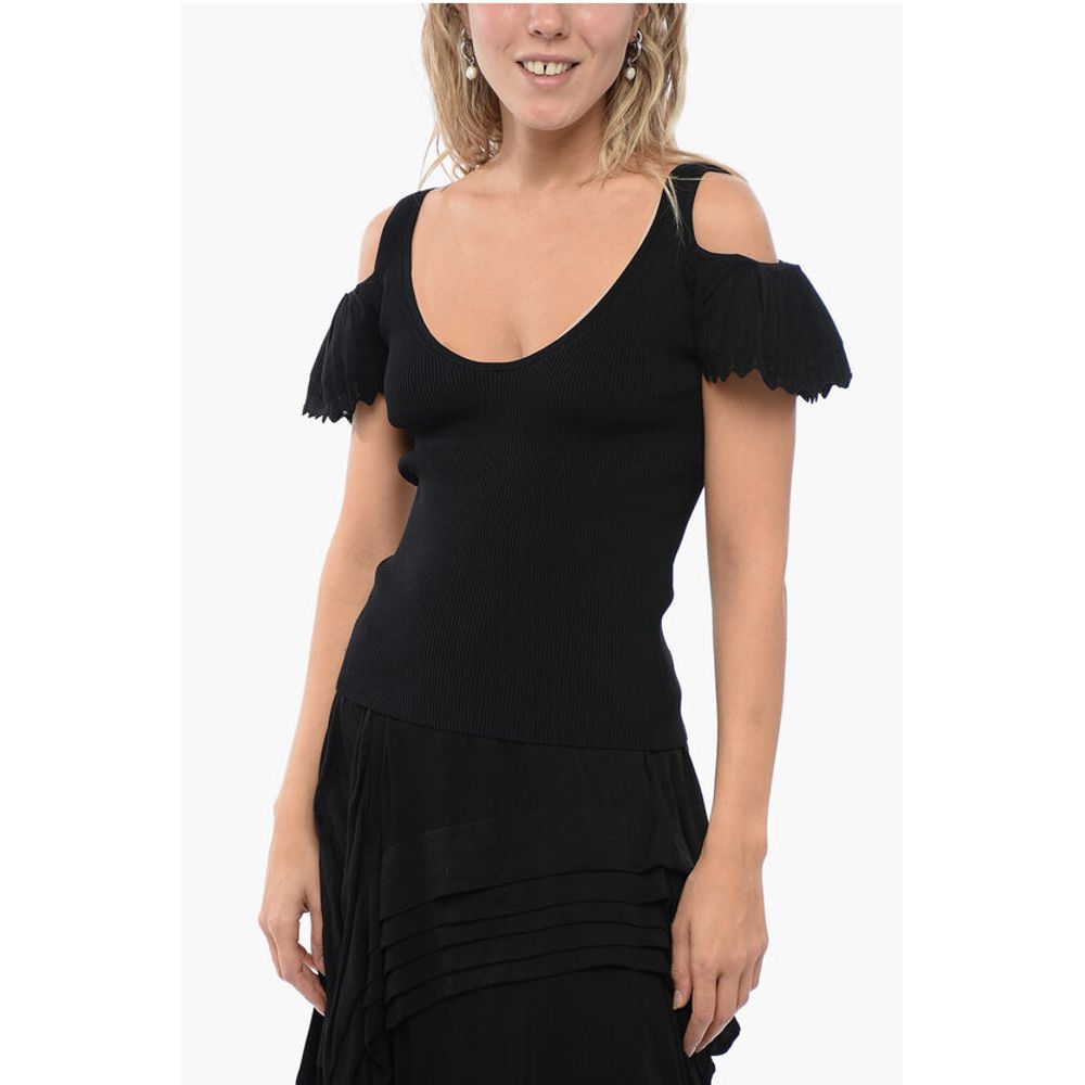 J.W.Anderson Ribbed Cut-Out Top with Ruffled Sleeves