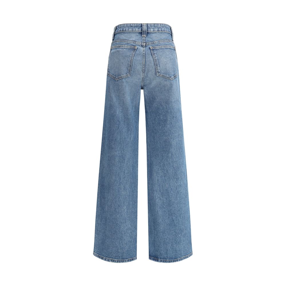 Khaite’s cotton Dane Jeans are a wide-leg, five-pocket style with a mid-rise waist and front button and zipper closure. Belt loops at the waistband allow for customization of the fit.