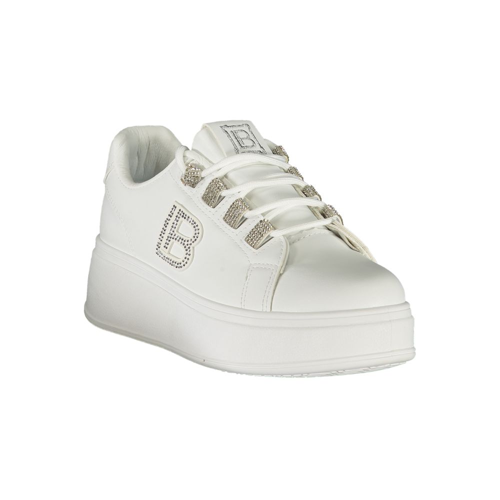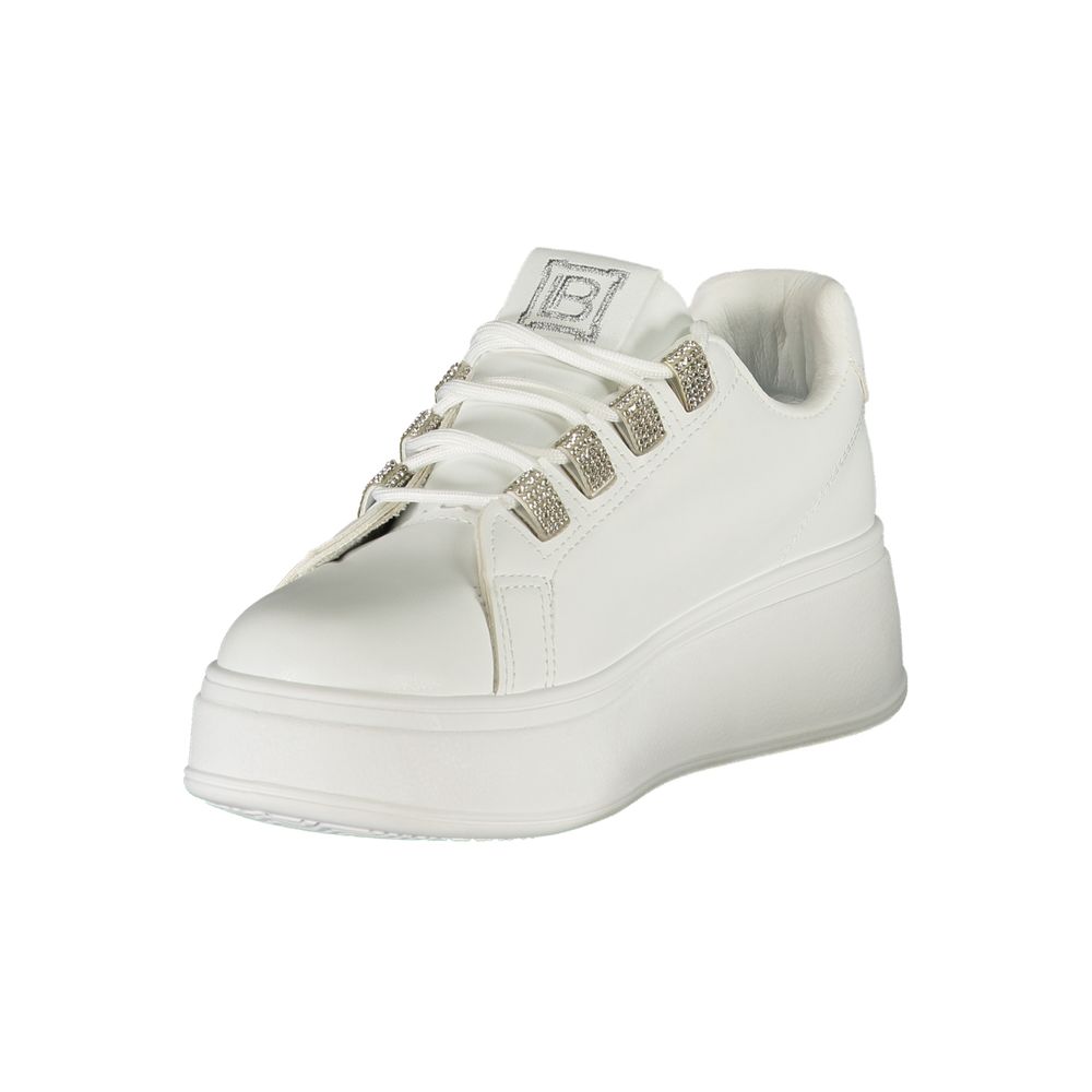 Elevate your sneaker game with Laura Biagiotti’s exquisite blend of sporty chic and glitzy elegance. These sneakers are a sartorial masterpiece, boasting a sleek white palette adorned with contrasting details that captivate. The sparkle of rhinestones and intricate embroidery promise to turn heads, while the removable insole ensures personalized comfort. Perched on a 4 cm wedge, they’re not just shoes but a statement of style. Perfect for the bold fashionista ready to stride with confidence and flair.