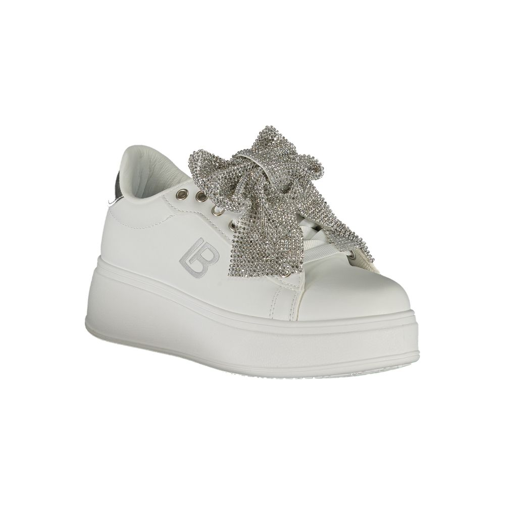 Step into high-fashion comfort with these Laura Biagiotti sneakers, a perfect blend of sporty chic and sparkling elegance. Crafted with an eye for detail, each shoe boasts contrasting accents and removable rhinestones, adding a touch of glamour. The 4 cm wedge offers a subtle lift while ensuring maximum comfort with its removable insole. A true representation of luxury sportswear, these white sneakers are designed to make a statement with every stride.