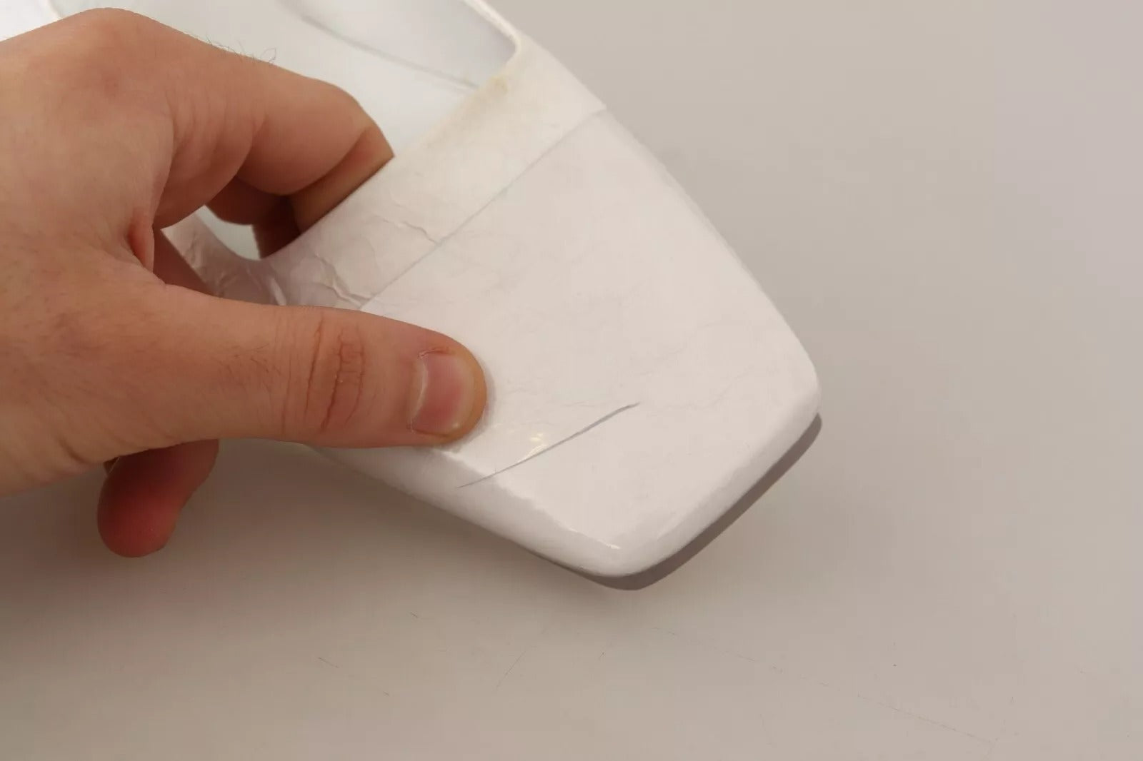This item has minor defect, it has rip and glue marks on both shoes (see pictures for details).