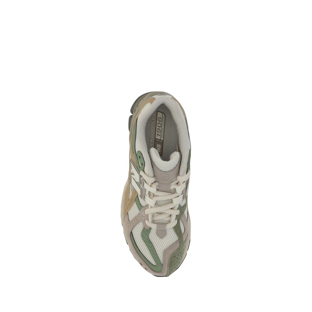 Utility 1906 Sneakers by New Balance, mesh details on side panels, leather details, iconic brand logo applique on side panel, front lace-up closure, logo patch on front tongue, textured flat rubber sole.