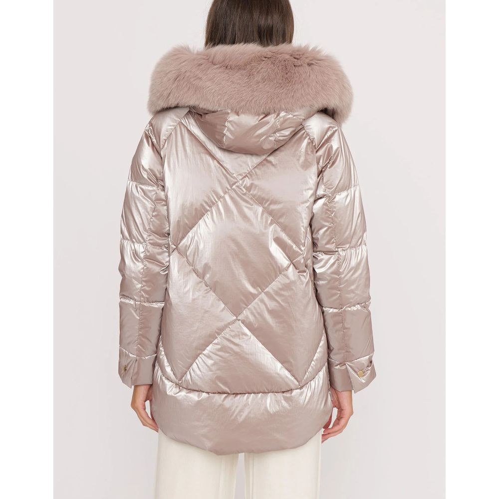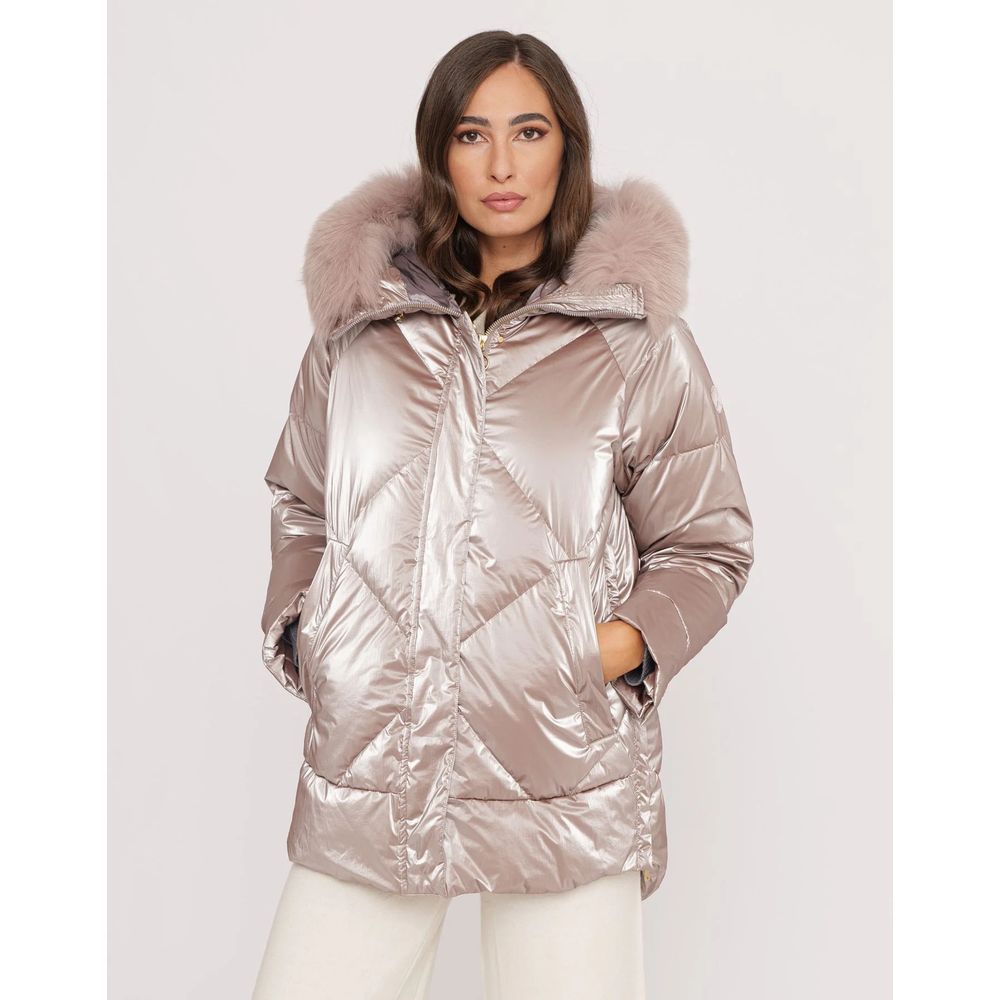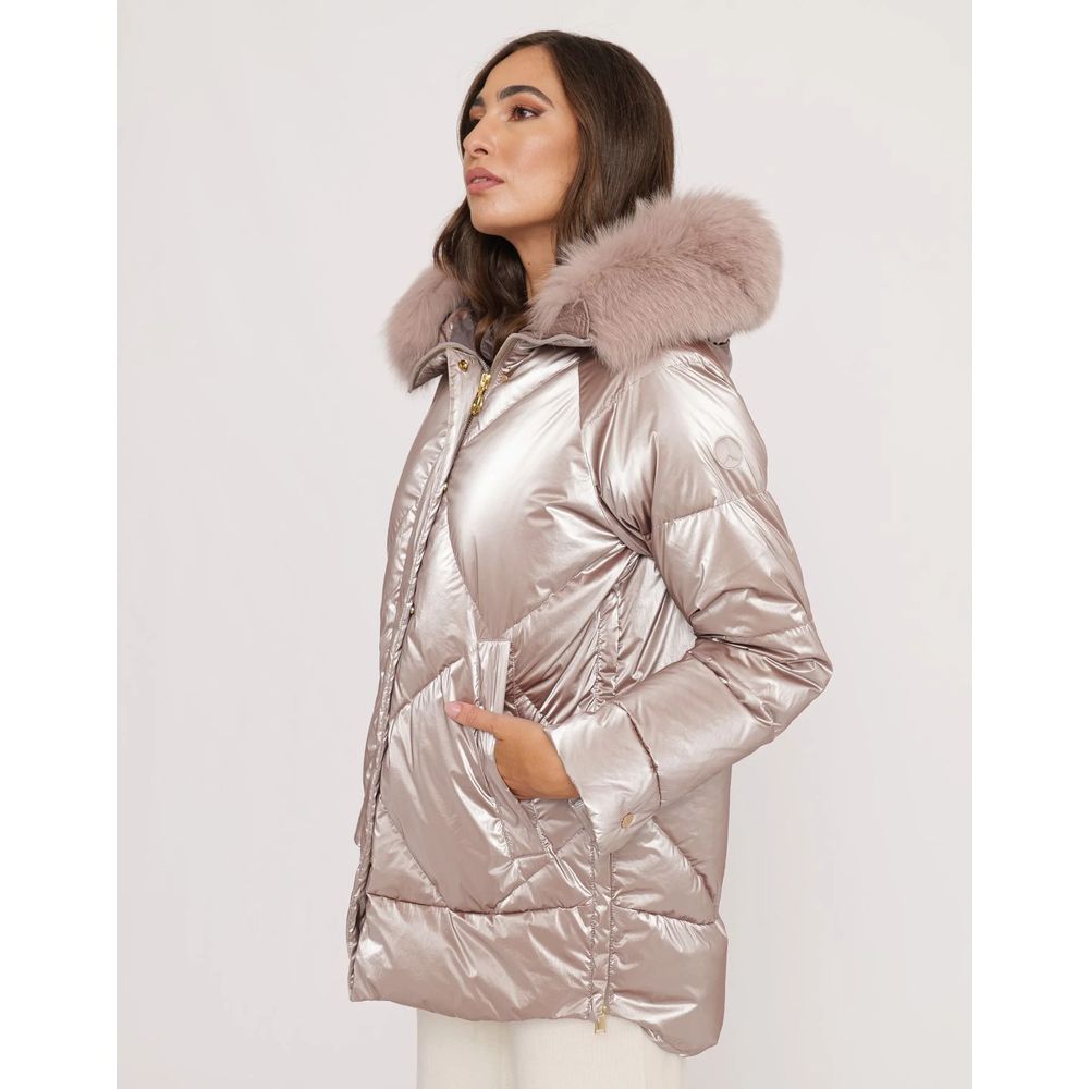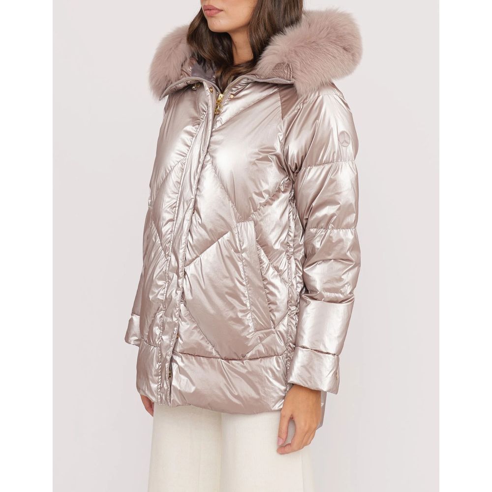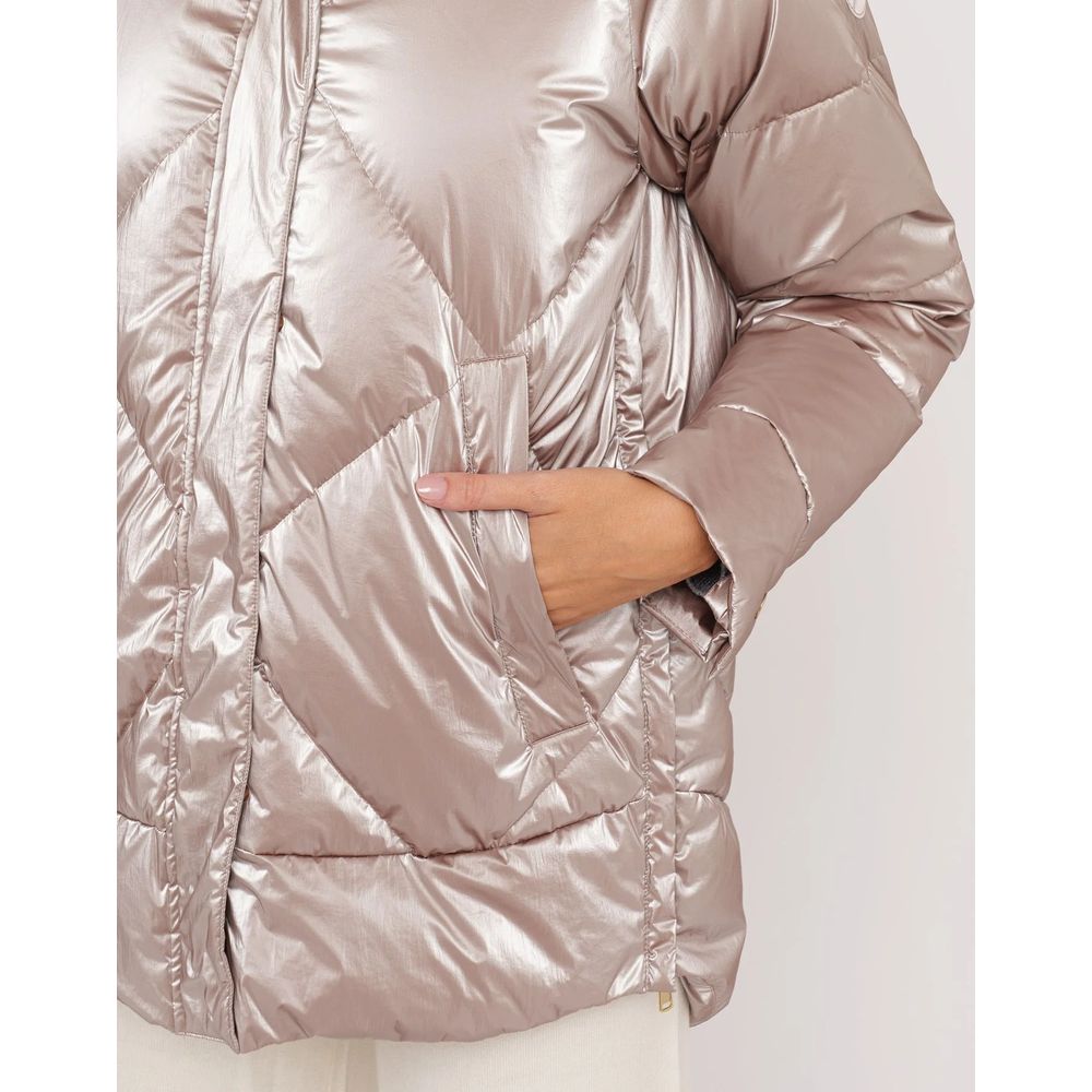 People Of Shibuya quilted down jacket in ultralight technical fabric with ‘pearl finish’ treatment. 90/10 goose down filling. Central double-slider die-cast zip with gold finish and new round logo. Bellows side openings with metal-effect die-cast zips. External welt pockets with invisible double snap button. Logo applied in 3D lycra in colour tone. High-visibility reflective details.