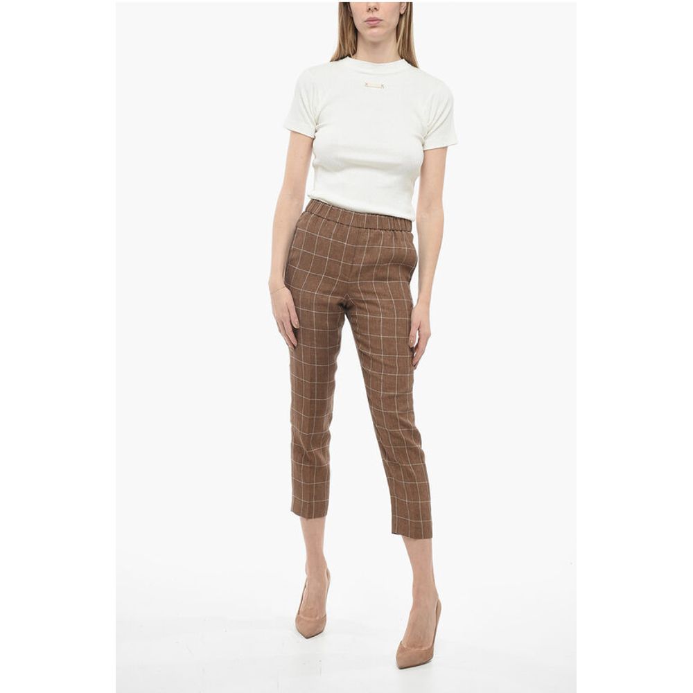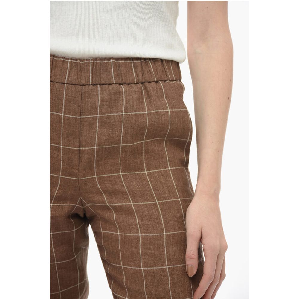 Peserico Windowpane Check Flax Pants with Elastic Waistband
