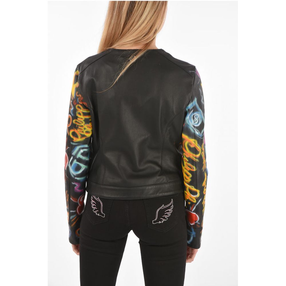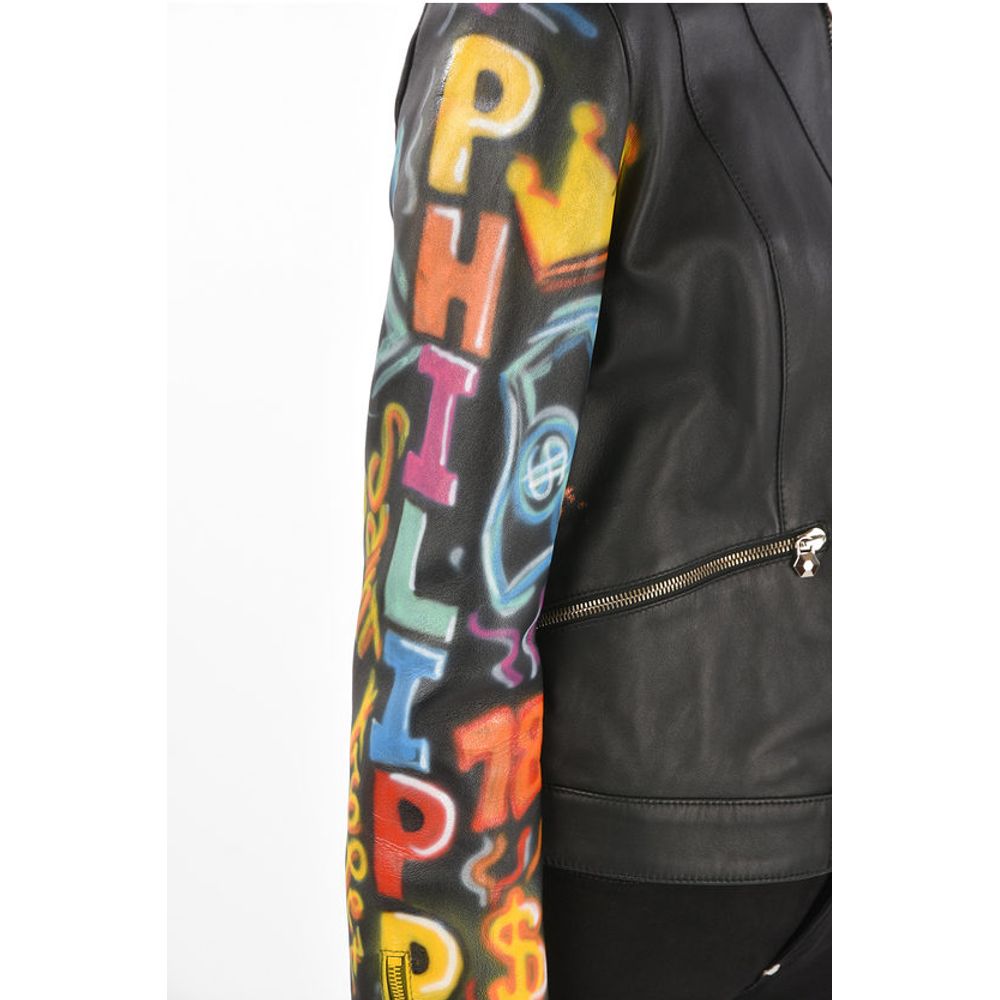 Philipp Plein COUTURE Leather Jacket GRAFFITI with Printed Sleeves