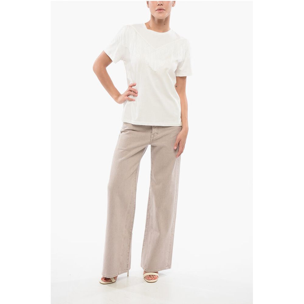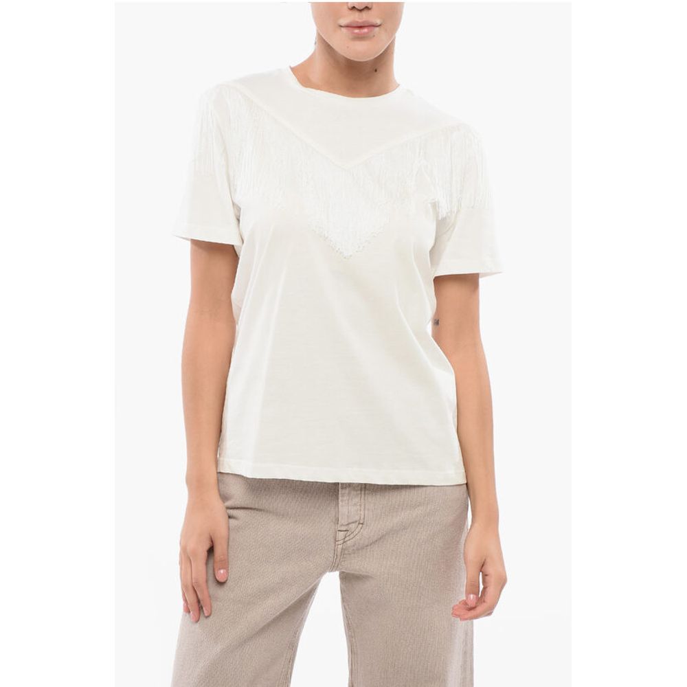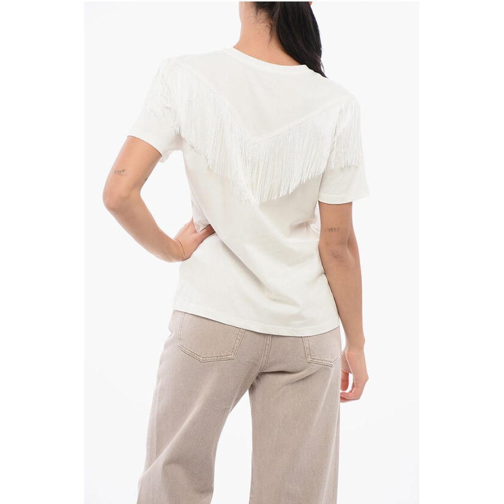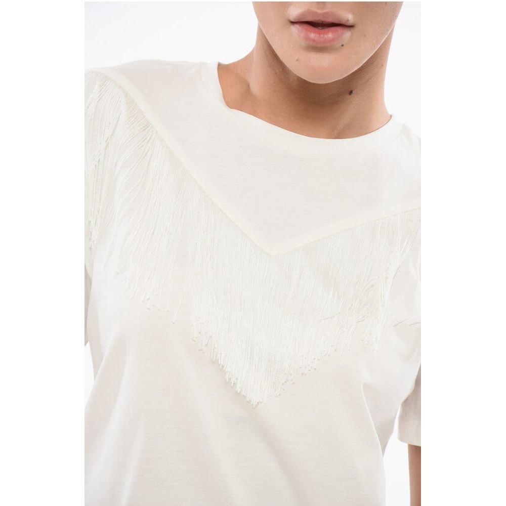 PINKO Cotton UNDER WORLD Crew-neck T-shirt with Fringes