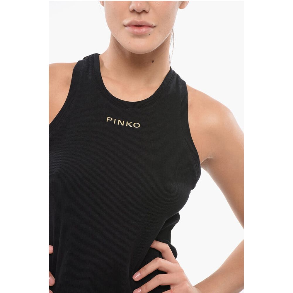 PINKO DENIM Ribbed Tank Top With Golden Logo
